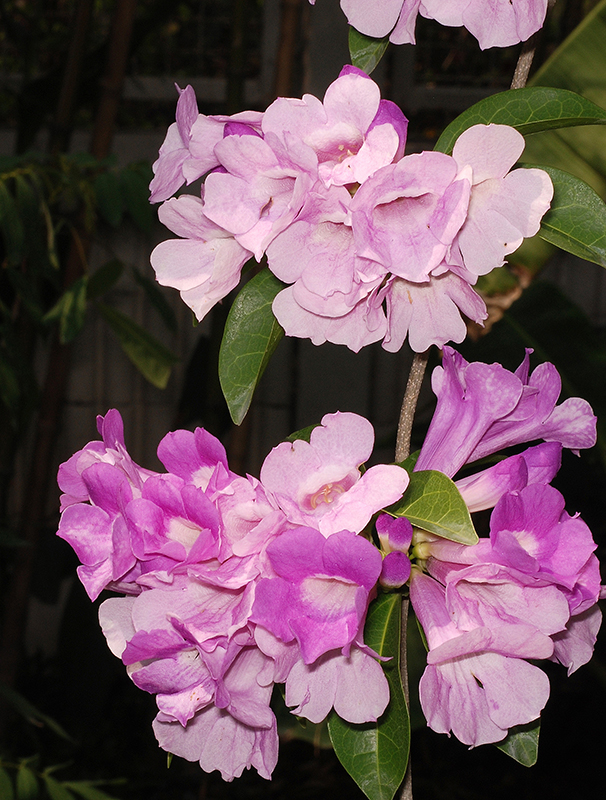 ไม้เถา มีมือจับแยกเป็น 3 แฉก ใบประกอบมี 2 ใบย่อย ก้านยาว 1–2 ซม. ใบย่อยออกตรงข้าม รูปไข่ ยาว 5–10 ซม. เส้นโคนข้างละ 1 เส้น ก้านใบยาวได้ถึง 1 ซม. ช่อดอกแบบแยกแขนงเป็นกระจุกสั้น ๆ ตามปลายกิ่งที่แยกออกจากเถา กลีบเลี้ยงคล้ายรูปถ้วย ยาว 4–6 มม. ปลายตัดหรือจักตื้น ๆ 5 พู ดอกรูปแตร ยาว 3.5–5 ซม. หลอดกลีบดอกเรียวแคบ ปลายบานออกแยกเป็น 5 กลีบ รูปไข่กลับกว้าง ยาวประมาณ 1.5 ซม. เรียงซ้อนเหลื่อม กลีบบน 2 กลีบ กลีบล่าง 3 กลีบ ปลายกลีบเป็นติ่งแหลม เกสรเพศผู้ 4 อัน อยู่ภายในหลอดกลีบดอก ผลแห้งแตก แบน รูปแถบ ขอบมีสัน เมล็ดบางมี 2 ปีก มีถิ่นกำเนิดในอเมริกาเขตร้อน จากเม็กซิโกถึงบราซิล เป็นไม้ประดับ เป็นซุ้มหรือทำรั้ว ทนแล้งสกุล Mansoa DC. มีประมาณ 12 ชนิด พบเฉพาะในอเมริกาเขตร้อน ชื่อสกุลตั้งตามนักพฤกษศาสตร์ชาวบราซิล A.L.P. da Silva Mansao (1788–1848) พืชสกุลนี้หลายชนิด ใบเมื่อขยี้มีกลิ่นกระเทียม มีสรรพคุณแก้ไข้ และไข้หวัด