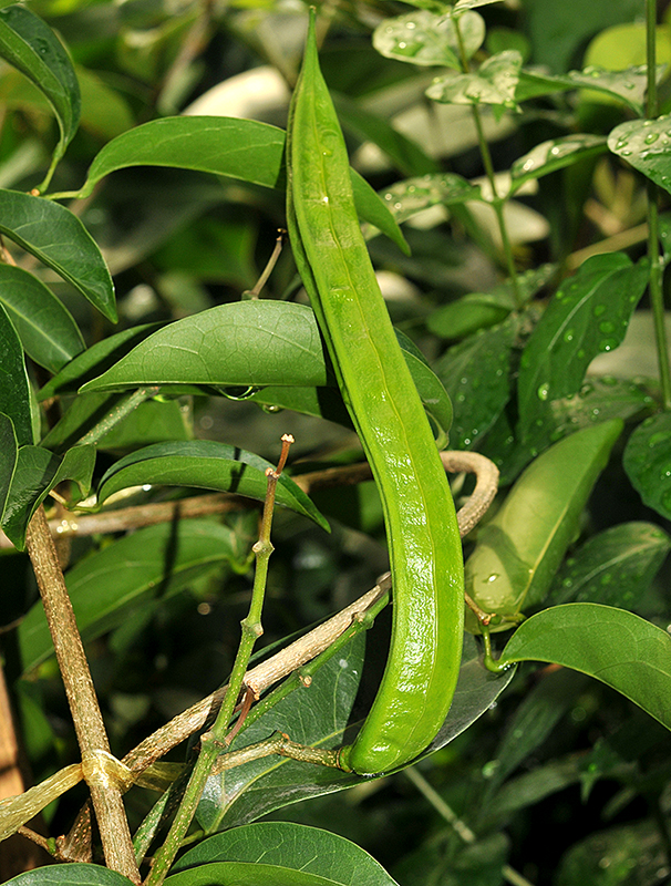 กระเทียมเถา: ช่อดอกออกตามกิ่งที่แยกออกมาจากเถา กลีบดอกรูปแตร ผลรูปแถบ แบน ขอบมีสัน (ภาพ: ราชันย์ ภู่มา)