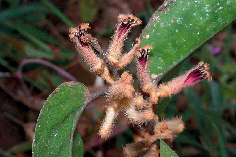 กาฝากขน: ช่อดอกมีขนหนาแน่น หลอดกลีบดอกแฉกลึกด้านเดียว (ภาพ: ราชันย์ ภู่มา)