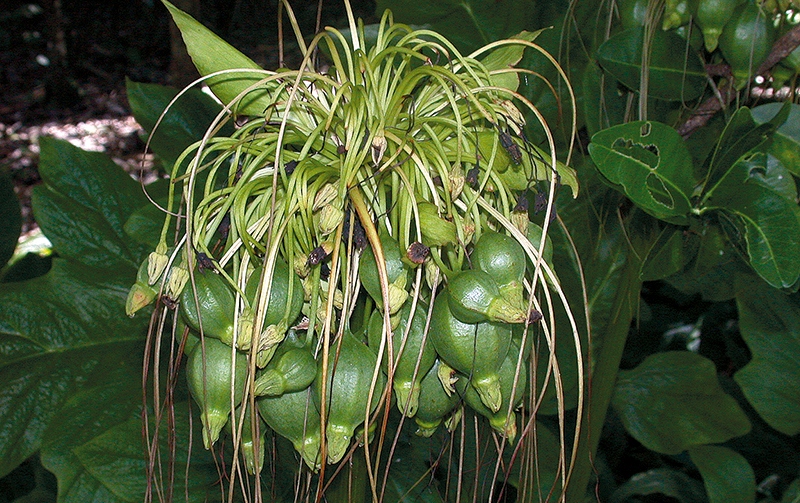 เท้ายายม่อม: ใบประดับรูปใบหอก ใบประดับย่อยรูปเส้นด้าย ติดทน ผลเป็นสัน (ภาพ: ราชันย์ ภู่มา, ปรีชา การะเกตุ)