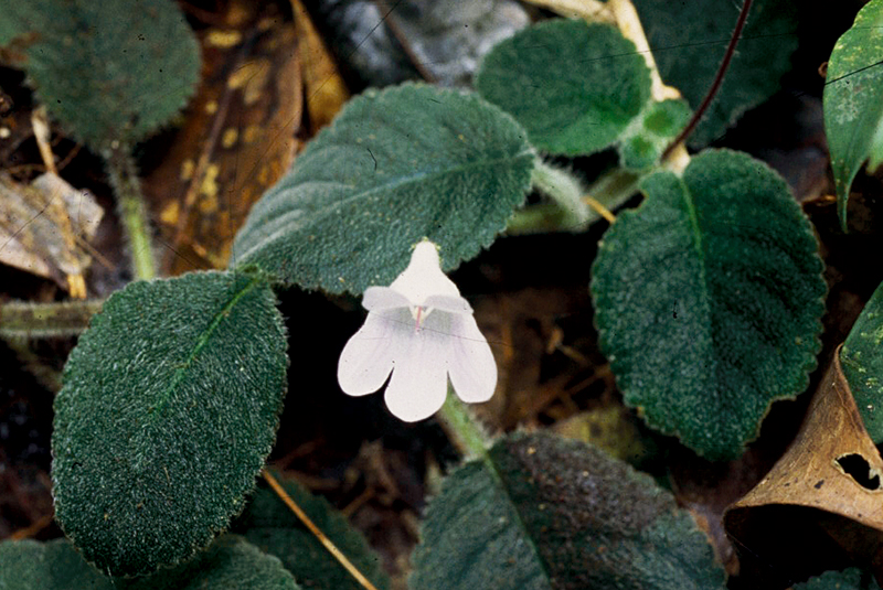 ไม้ล้มลุก ทอดนอน ลำต้นสั้น มีไหลแยกออกด้านข้าง มีขนสั้นนุ่มหนาแน่นตามยอด แผ่นใบทั้งสองด้าน มีประปรายตามช่อดอก กลีบเลี้ยง กลีบดอก และผล ใบเรียงชิดกันที่ปลายยอด รูปรีหรือรูปไข่ ยาว 4.5–7.5 ซม. ปลายกลมหรือแหลม เส้นแขนงใบข้างละ 6–10 เส้น ก้านใบยาว 1–4.5 ซม. ช่อดอกมีดอกเดียว ก้านช่อยาว 4–6.5 ซม. ก้านดอกยาว 3–5 มม. กลีบเลี้ยงมีสีม่วงแดงแต้ม รูปไข่ ยาว 1.2–3 มม. ดอกสีขาวอมม่วงอ่อน ๆ ยาวประมาณ 2 ซม. ก้านเกสรเพศเมียยาว 1–1.5 ซม. มีขนสั้น ผลยาว 1.3–2.5 ซม. ผลอ่อนสีม่วงแดง(ดูข้อมูลเพิ่มเติมที่ แก้วน้ำค้าง, สกุล)