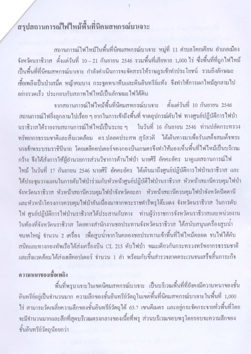 รายงานสถานการณ์ไฟไหม้ในพื้นที่ของนิคมสหกรณ์บาเจาะ