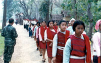 ทรงทอดพระเนตรกิจกรรมการแสดงวีถีชิวิตและศิลปวัฒนธรรมท้องถิ่นของชาวไทยภูเขาเผ่ากระเหรี่ยงแดง