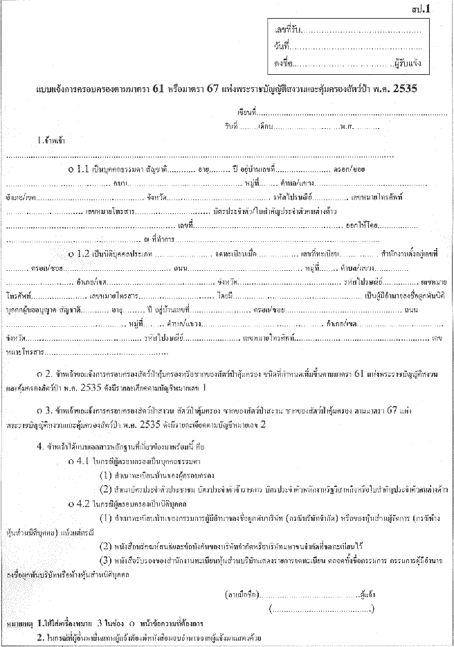 สัตว์ป่า และพันธุ์พืชเปิดแจ้งการครอบครองสัตว์ป่าคุ้มครองตามพระราชบัญญัติสงวน