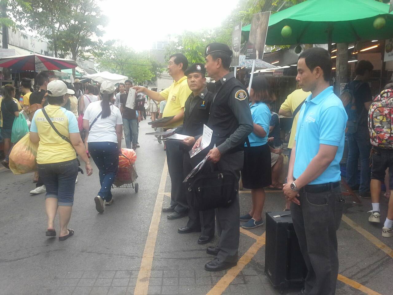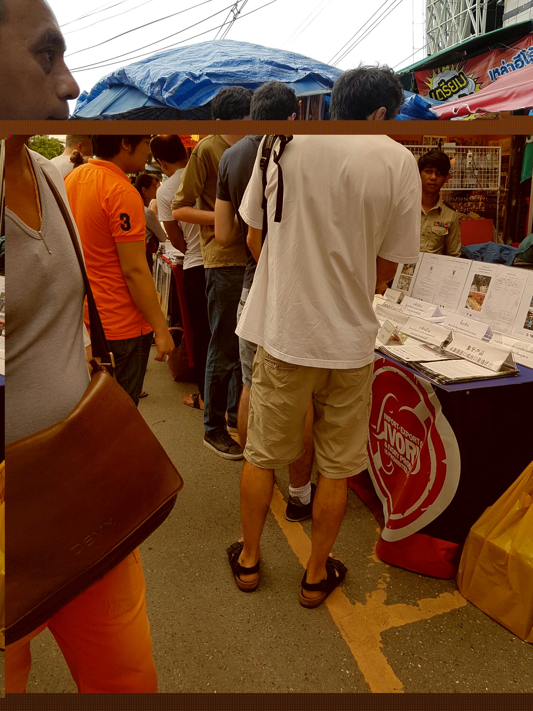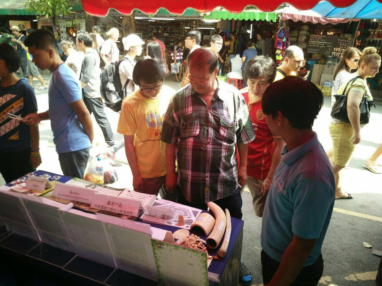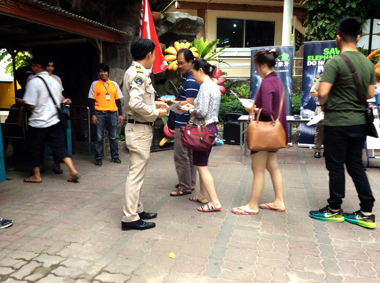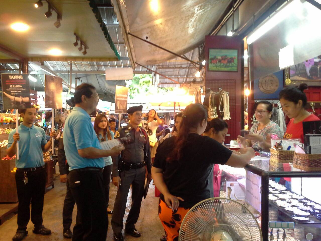 เจ้าหน้าที่กรมอุทยานแห่ชาติ สัตว์ป่าและพันธุ์พืช ร่วมกับเจ้าหน้าที่ตำรวจ บก.ปทส. รณรงค์ประชาสัมพันธ์ ไม่ให้นักท่องเที่ยวชาวต่างชาติซื้องาช้างจากประเทศไทย และร่วมตรวจร้านค้างาช้าง ที่ตลาดนัดจตุจักร กทม. ทุกอาทิตย์ |