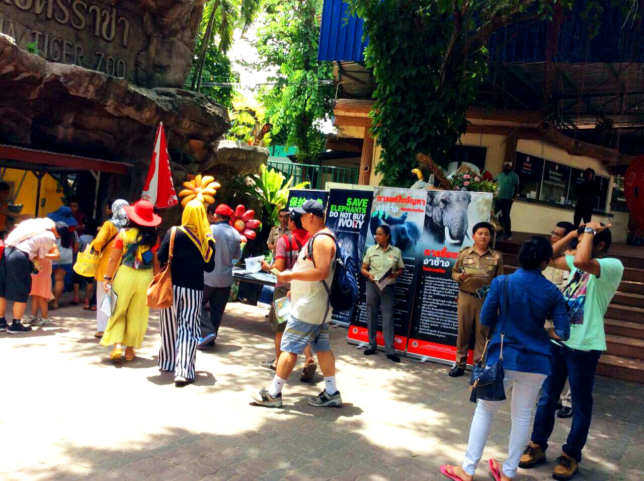 วันเสาร์ที่ 9 กรกฎาคม 2559 ด่านตรวจสัตว์ป่าลาดกระบัง จัดนิทรรศการและรณรงค์ไม่ให้นักท่องเที่ยว ซื้องาช้างจากประเทศไทย ที่ตลาดนัดจตุจักร กทม. |