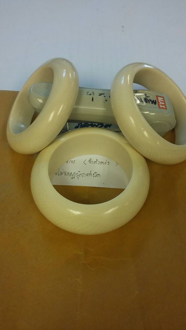 วันที่ 11 ก.พ. 2559 ด่านตรวจสัตว์ป่าท่าอากาศยานสุวรรณภูมิ ตรวจสอบผลิตภัณฑ์สินค้าคล้ายงาช้าง จำนวน 3 ชิ้น และต้องส่งตรวจพิสูจน์ต่อที่กรม ฯ กลุ่มงานวิจัยสัตว์ป่า เพื่อรับรองและตรวจสอบว่างาแท้หรือเทียม |