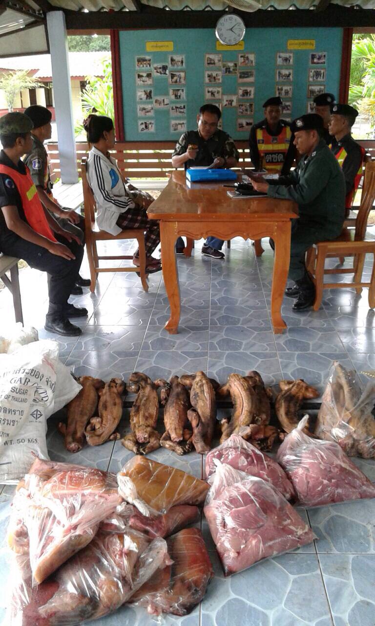 วันที 9 พย. 58 ด่านตรวจสัตว์ป่าคลองใหญ่ จ.ตราด ร่วมกับสายตรวจปรามปรามฯ สายที่2 สำนักฯ 2 ศรีราชา , สายตรวจปราบปรามฯ สายที่ 1 ส่วนอนุรักษ์สัตว์ป่า และ หน่วยปฎิบัติการพิเศษที่ 2 สปป.(ภาคกลาง) ร่วมกันตรวจปราบปรามฯ ( จากการขยายผลคดีก่อน ) บริเวณตลาดแสนตุ้ง ม.1 ต.แสนตุ้ง อ.เขาสมิง จ.ตราด จับกุม นางสาวอรุณ สีเทียนไทย อายุ 53 ปี สัญชาติไทย พร้อมตรวจยึดซากสัตว์ป่าคุ้มครอง 1. ซากกระจง 2.ซากตะกวด 3.ซากลิ่น 4.ซากเม่น น้ำหนักรวม 28.04 กก. อุปกรณ์ในการกระทำผิด ถังแช่น้ำแข็งขนาด 100 กก. 1 ถัง ได้นำตัวผู้ต้องหา ของกลาง ส่งพนักงานสอบสวน สภ.เขาสมิง ดำเนินคดีแล้ว ตามปจว ข้อ 8 เวลา 17.20 น. ลงวันที่ 9 พย. 58 คดีอาญาที่ 287/58 ยึดทรัพย์ที่ 127/58 |