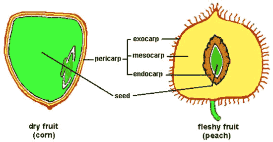 - ผนังชั้นใน (Endocarp) ผนังชั้นใน มีทั้งอ่อนนุ่มเช่น ส้ม และมีลักษณะแข็งเช่น มะม่วง มะพร้าว