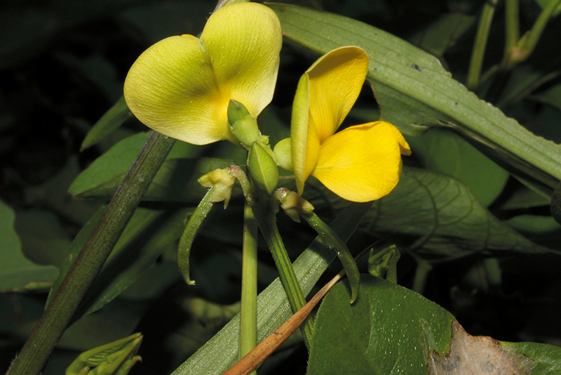 ไม้เถา เกลี้ยงหรือมีขนประปรายตามแผ่นใบ มีขนหนาแน่นตามก้านใบและช่อดอก หูใบยาว 2–3 มม. ร่วงเร็ว หูใบย่อยสั้นกว่า ติดทน ก้านใบประกอบยาว 2.2–7 ซม. ใบย่อยรูปรี รูปไข่ หรือรูปไข่แกมรูปใบหอก ยาว 3.8–9.3 ซม. ปลายมีติ่งหนาม แผ่นใบทั้งสองด้านมีขนสั้นนุ่มประปราย ก้านใบย่อยยาว 2–3 มม. ช่อดอกยาว 9–30 ซม. ก้านช่อยาว 8–28 ซม. กลีบเลี้ยง 4 กลีบ ยาว 1–1.5 มม. ดอกสีเหลือง กลีบกลางกว้าง 1.5–2 ซม. ยาว 1.2–1.5 ซม. กลีบปีกยาว 1.2–1.4 ซม. กลีบคู่ล่างยาว 1–1.3 ซม. เกสรเพศผู้ยาว 1.1–1.5 ซม. รังไข่มีขน ฝักแบนรูปแถบ ยาว 4.5–5.5 ซม. มีขน ช่วงโคนคอดประมาณ 2 มม. ก้านผลยาว 5–6 มม. เมล็ดสีเขียวมีจุดประสีน้ำตาลเข้ม เมล็ดแก่สีน้ำตาลอมดำ รูปไต ยาว 4–5 มม. (ดูข้อมูลเพิ่มเติมที่ ถั่วเขียว, สกุล)
