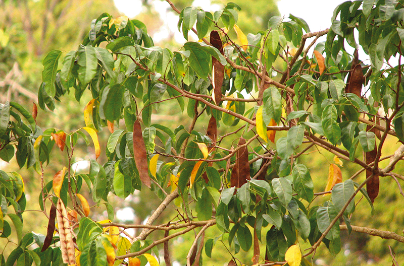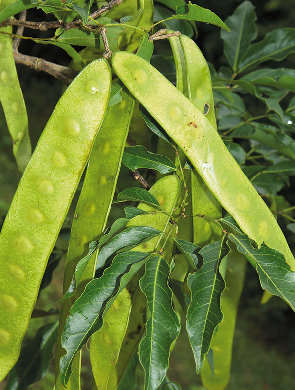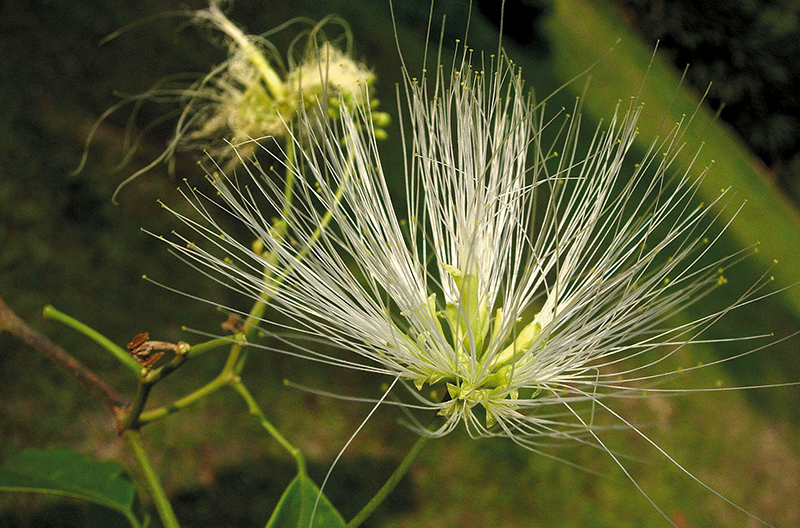 ปันแถ: ใบประกอบ 2 ชั้น ช่อดอกแบบช่อกระจุกแน่น แยกแขนง เกสรเพศผู้จำนวนมาก ฝักรูปแถบ แบน (ภาพ: สุคิด เรืองเรื่อ)