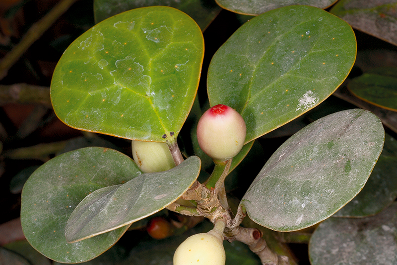 ไม้พุ่ม หรืออิงอาศัย สูง 3–5 ม. มีรากอากาศ ลำต้นและกิ่งเกลี้ยง เรียงซิกแซ็ก ใบรูปไข่กลับหรือแกมรูปขอบขนาน ยาว 1–8 ซม. ปลายกลม โคนมน แหลม หรือเรียวสอบ แผ่นใบหนา ด้านล่างมักมีสีน้ำตาลแดงหรืออมเขียว เส้นกลางใบแยก 2 แฉก มีต่อมสีดำที่โคนใบ โคนเส้นแขนงใบ และระหว่างเส้นกลางใบที่แยก 2 แฉก ก้านใบยาว 0.5–3 ซม. มีขนสั้น ๆ ดอกอยู่ภายในฐานดอกที่ขยายออกเดี่ยวๆ หรือเป็นคู่ตามซอกใบ เส้นผ่านศูนย์กลาง 1–1.5 ซม. สีเขียว เหลือง ชมพู หรือแดงอมม่วง ก้านยาวได้ถึง 1 ซม. มีขนสั้น รูเปิดเส้นผ่านศูนย์กลางประมาณ 1.5 มม. มีขนด้านในประปราย ใบประดับ 3 อัน รูปสามเหลี่ยม ยาว 1–2 มม. มีขนครุย (ดูข้อมูลเพิ่มเติมที่ ไทร, สกุล)