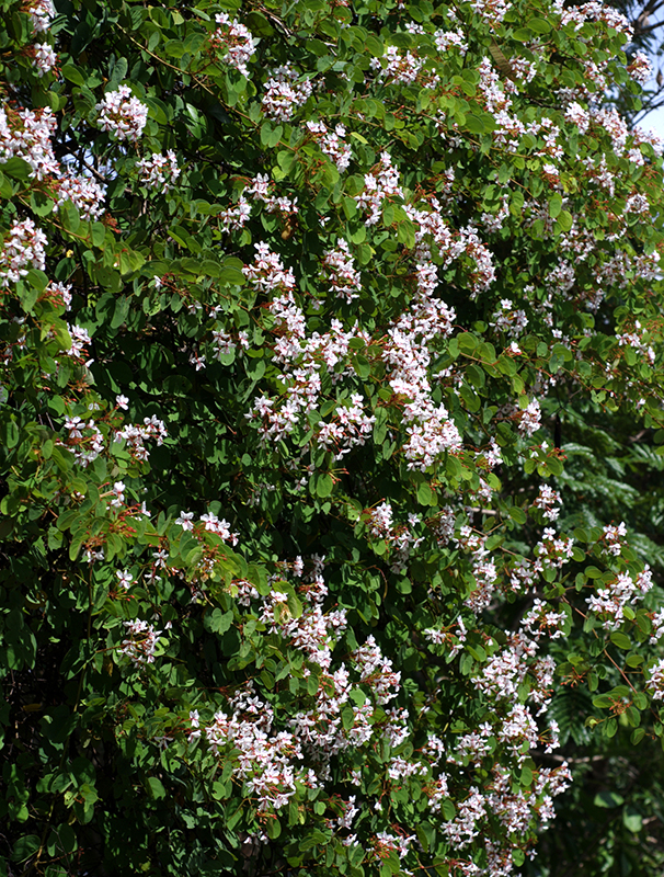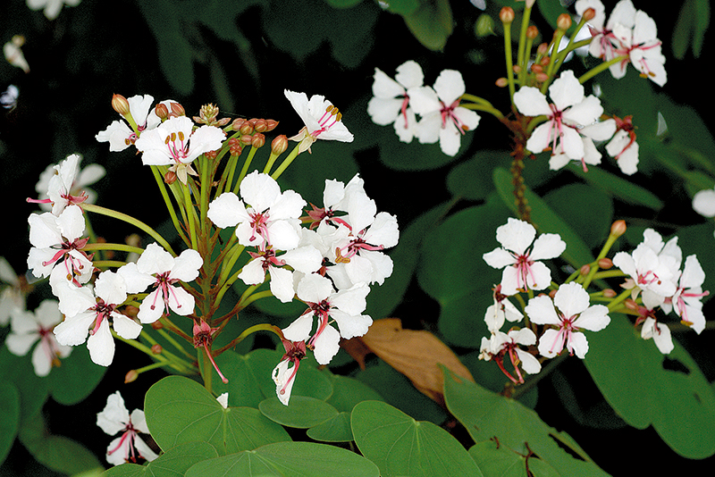 ไม้เถา มีขนสีน้ำตาลแดงตามกิ่งอ่อน เส้นแขนงใบด้านล่าง ก้านใบ ตาดอก และฐานดอก หูใบรูปเคียวขนาดเล็ก ใบรูปรีกว้าง ยาว 4–5 ซม. ปลายแฉกลึกประมาณกึ่งหนึ่ง ปลายแฉกกลม โคนเว้าลึก เส้นใบ 9 เส้น ก้านใบยาว 1.5–2 ซม. ช่อดอกแบบช่อเชิงหลั่น ยาวได้ถึง 5 ซม. ใบประดับยาวประมาณ 6 มม. ก้านดอกยาว 1–1.5 ซม. ใบประดับย่อยติดประมาณกึ่งกลางก้านดอก ตาดอกรูปไข่ ยาวประมาณ 4 มม. ฐานดอกเรียวแคบ ยาว 2–3 ซม. กลีบเลี้ยงแยก 5 ส่วน พับงอกลับ ดอกสีขาว กลีบรูปไข่แกมรูปขอบขนาน ยาวประมาณ 1 ซม. เกสรเพศผู้ 3 อัน ก้านชูอับเรณูสีแดง ยาวประมาณ 1 ซม. เกสรเพศผู้ที่เป็นหมัน 7 อัน 2 อันติดระหว่างเกสรเพศผู้ที่สมบูรณ์ 5 อันเชื่อมติดกันที่โคน รังไข่เกลี้ยง ยอดเกสรเพศเมียรูปจาน ฝักรูปใบหอก ยาว 10–12 ซม. มี 8–16 เมล็ด รูปรี แบน ยาวประมาณ 9 มม. (ดูข้อมูลเพิ่มเติมที่ แสลงพัน, สกุล)