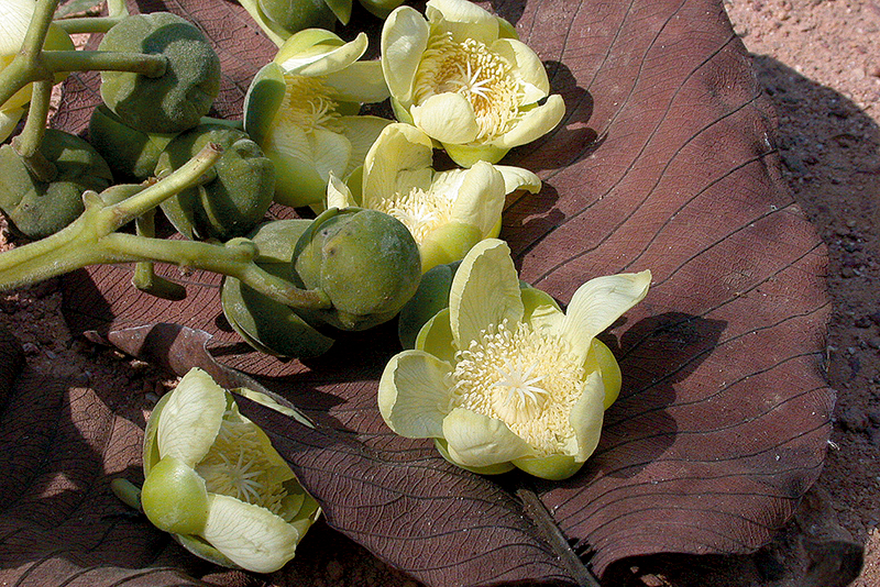 ไม้ต้น ผลัดใบ สูงได้ถึง 40 ม. ใบรูปไข่กลับหรือแกมรูปขอบขนาน ยาว 15–25 ซม. ปลายกลมหรือมน โคนแหลมหรือมน ขอบจักซี่ฟัน แผ่นใบด้านล่างมีขนสาก เส้นแขนงใบข้างละ 25–35 เส้น ก้านใบยาว 1.5–3.5 ซม. ช่อดอกมี 2–4 ดอก ออกตามกิ่งก่อนผลิใบหรือพร้อมใบ โคนมีใบประดับขนาดเล็กจำนวนมาก ก้านดอกหนา ยาว 0.5–3 ซม. กลีบเลี้ยงรูปไข่ ยาว 1.2–1.8 ซม. ด้านนอกมีขนสาก ดอกสีเหลือง กลีบบาง รูปใบพาย ยาว 2.5–3.5 ซม. เกสรเพศผู้วงนอกยาว 5–7 มม. โค้งออก วงในยาว 1.2–1.5 ซม. พับงอกลับ มี 5–8 คาร์เพล ยาว 5–6 มม. ก้านเกสรเพศเมียยาวประมาณ 7 มม. ผลสดไม่แตก เส้นผ่านศูนย์กลางประมาณ 2 ซม. รวมกลีบเลี้ยง สุกสีส้ม เมล็ดไม่มีเยื่อหุ้มพบที่พม่า ในไทยพบทางภาคเหนือ และภาคตะวันตกเฉียงใต้ที่อุทัยธานี กาญจนบุรี ขึ้นตามป่าเบญจพรรณ และป่าเต็งรัง ความสูง 250–1100 เมตร