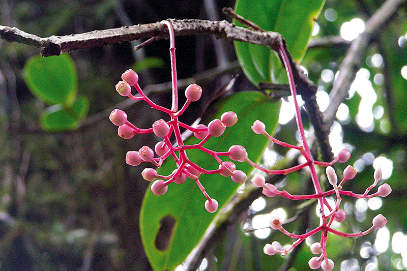 เคลงย้อย: ช่อกระจุกแยกแขนง ออกตามข้อในกิ่งแก่ ช่อและก้านช่อยาว (ภาพ: มนตรี ธนรส)
