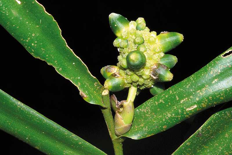 เถาพันดง: ก้านช่อดอกยาว โคนกาบรูปหัวใจหุ้มก้านช่อ (ภาพ: ราชันย์ ภู่มา)