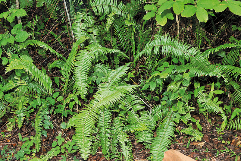 เฟินขึ้นบนพื้นดินหรือหิน เหง้าสั้น ตั้งตรง เส้นผ่านศูนย์กลาง 3–7 มม. เกล็ดสีน้ำตาลรูปสามเหลี่ยม ยาว 3–4 มม. ขอบมีขน ใบประกอบชั้นเดียว รูปใบหอก กว้าง 10–30 ซม. ยาว 50–100 ซม. ก้านใบสีน้ำตาล ยาว 25–50 ซม. ก้านใบและแกนกลางใบประกอบมีเกล็ด ใบย่อยมีมากกว่า 60 คู่ รูปขอบขนานหรือรูปใบหอก ยาว 8–15 ซม. โคนเว้าตื้น ด้านบนเป็นติ่ง ขอบเป็นคลื่น แผ่นใบด้านบนสีเขียวเข้มเป็นมันวาว ด้านล่างสีเขียวอ่อน มีเกล็ดปกคลุม เส้นแขนงใบแยกแขนงเป็นคู่ กลุ่มอับสปอร์กลม เรียงเป็นแถวใกล้ขอบใบ เยื่อคลุมกลุ่มอับสปอร์รูปคล้ายไตพบทั่วไปในเอเชียเขตร้อนจนถึงแปซิฟิก ขึ้นตามที่โล่งค่อนข้างแห้งแล้ง ความสูง 100–850 เมตรสกุล Nephrolepis Schott มีประมาณ 30 ชนิด ในไทยมี 8 ชนิด หลายชนิดมีศักยภาพเป็นไม้ประดับ ชื่อสกุลมาจากภาษากรีก “nephros” ไต และ “lepis” เกล็ด หมายถึงเยื่อคลุมกลุ่มอับสปอร์รูปคล้ายไต