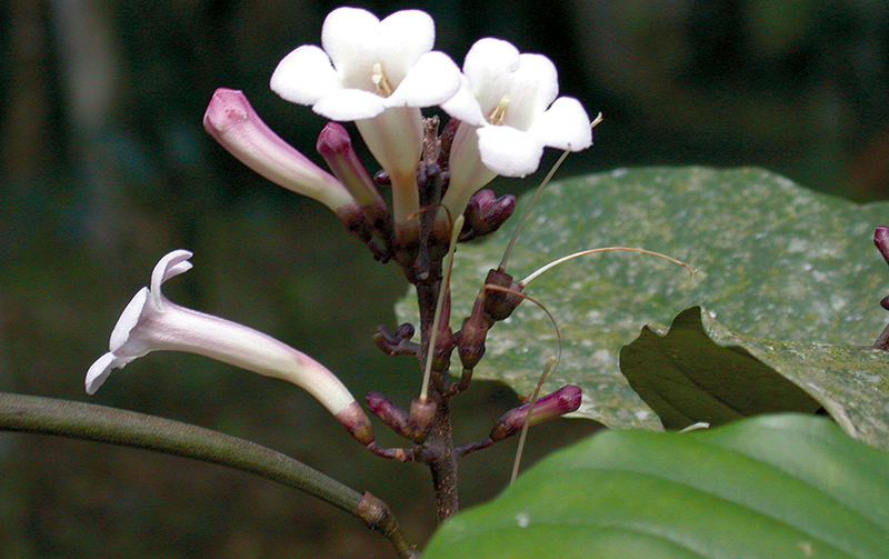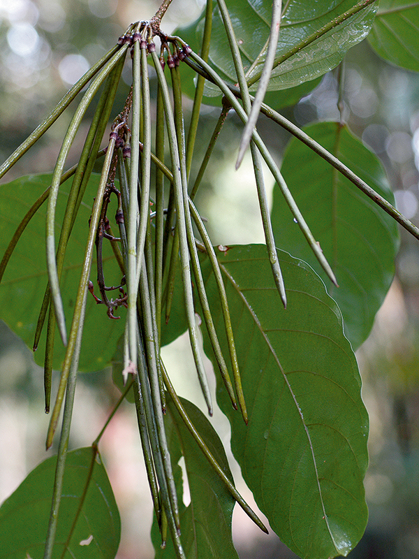 ไม้ต้น สูงได้ถึง 10 ม. ใบประกอบชั้นเดียว มีใบย่อย 2–4 คู่ รูปรีถึงรูปใบหอก ยาว 9–30 ซม. แผ่นใบด้านล่างมีต่อมสีดำกระจายเป็นแนว ช่อดอกออกตามปลายกิ่ง ยาว 12–30 ซม. แยกแขนงสั้น ๆ หลอดกลีบเลี้ยงปลายตัด ยาว 3–5 มม. ติดทน มีต่อมตามสันที่โคนกลีบ ดอกรูปทรงกระบอก สีขาวอมชมพู หลอดกลีบดอกยาว 2.5–3.5 ซม. โคนคอด กลีบรูปรีกว้าง กว้างประมาณ 8 มม. เกสรเพศผู้มีต่อมขนที่จุดติด ไม่ยื่นพ้นหลอดกลีบ จานฐานดอกรูปวงแหวน ฝักออกเป็นกระจุก รูปแถบ ตรง ห้อยลง ยาว 18–30 ซม. เมล็ดรูปแถบ ยาวประมาณ 2 ซม. รวมปีก (ดูข้อมูลเพิ่มเติมที่ กาซะลองคำ, สกุล)