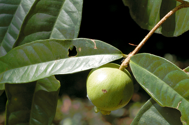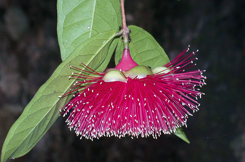 ไม้ต้น สูงได้ถึง 15 ม. ใบเรียงตรงข้าม รูปขอบขนาน รูปใบหอก หรือแกมรูปไข่ ยาว 9–28 ซม. โคนกลมหรือเว้าตื้น มีเส้นขอบใน 1 เส้น ก้านใบยาว 3.5–8 มม. ช่อดอกแบบช่อกระจะ ออกสั้น ๆ ตามปลายกิ่งหรือซอกใบใกล้ปลายกิ่ง มี 2–6 ดอก ก้านดอกยาว 3–5 มม. ฐานดอกยาว 1–1.7 ซม. ไม่มีต่อม ก้านดอกเทียมยาว 5–6 มม. กลีบเลี้ยง 4 กลีบ ยาว 3–6.5 มม. โคนหนา ขอบบาง ดอกสีชมพู แดง หรือเหลือง มี 4 กลีบ ขนาด 1.4–1.7 ซม. โคนหนา ขอบบาง มีต่อมหนาแน่น เกสรเพศผู้วงนอกยาว 2–3 ซม. รังไข่มี 2 ช่อง ผลเส้นผ่านศูนย์กลาง 2.5–2.7 ซม. (ดูข้อมูลเพิ่มเติมที่ หว้า, สกุล)