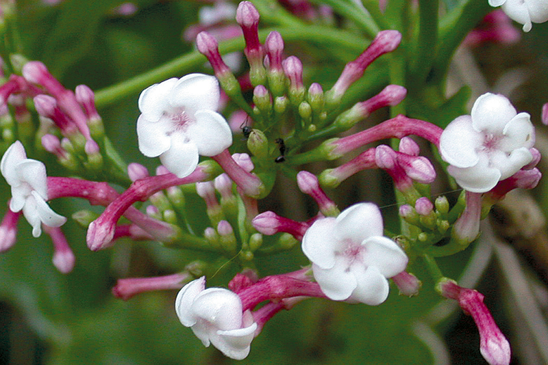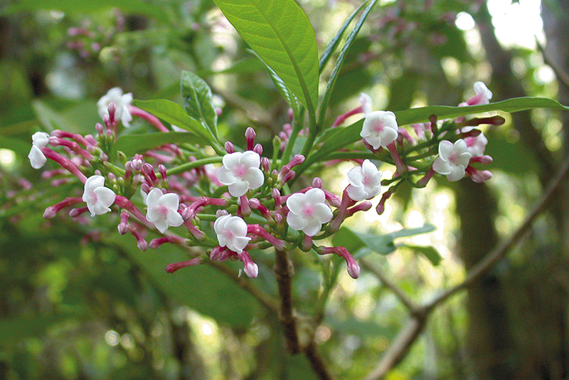 ระย่อมใหญ่: ช่อดอกหลายช่อเรียงเวียนรอบข้อตามปลายกิ่ง ดอกสีขาวหรือสีแดง (ภาพ: ราชันย์ ภู่มา)