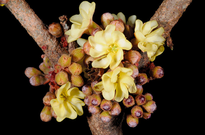 ไม้เถาเนื้อแข็งหรือไม้พุ่มรอเลื้อย สูง 5–8 ม. กิ่งอ่อนมีขนรูปดาว ใบรูปขอบขนานหรือรูปใบหอกแกมรูปไข่กลับ ยาว 8–30 ซม. ปลายแหลมยาว แผ่นใบบาง ก้านใบยาว 0.7–1.5 ซม. ช่อดอกแบบช่อกระจุก ออกตามซอกใบ มีได้ถึง 20 ดอก ก้านดอกยาว 1.5–3 มม. กลีบเลี้ยงมีขนกระจุกรูปดาวสีน้ำตาลแดงด้านนอก กลีบคู่นอกกลม กลีบใน 3 กลีบรูปไข่กว้าง ยาว 2.5–3.5 มม. ดอกสีเหลืองครีม หลอดกลีบดอกยาว 2.5–4 มม. มีแถบขนสีน้ำตาลแดงด้านนอก กลีบยาว 0.7–1 ซม. ปลายจักเป็นพูตื้น อับเรณูยาว 1.7–2 มม. ปลายยื่นพ้นหลอดกลีบดอก รังไข่รูปทรงกระบอก ยาว 1–1.5 มม. ยอดเกสรเพศเมียมีริ้ว 10 อัน ผลรูปรี ยาวประมาณ 2 ซม. ผลแก่สีแดงอมส้ม