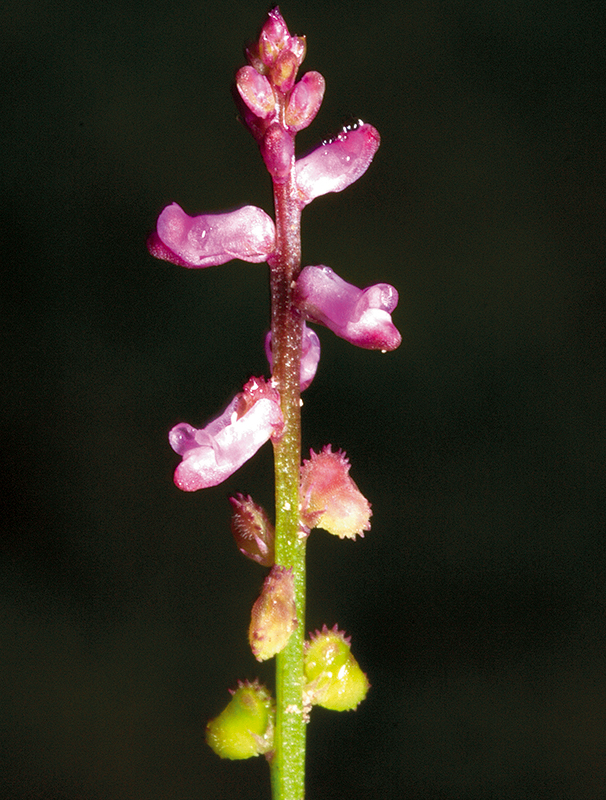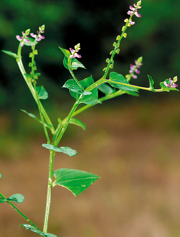 ไม้ล้มลุก สูงได้ถึง 30 ซม. แตกกิ่งจำนวนมาก ลำต้นมี 3 ปีก เกลี้ยง ใบรูปสามเหลี่ยมกว้าง โคนตัดหรือรูปหัวใจ ยาว 1–2.5 ซม. ปลายมีติ่งแหลม ก้านใบยาว 1–3 มม. ช่อดอกยาวได้ถึง 10 ซม. ใบประดับยาว 0.6–1 มม. ดอกส่วนมากสีชมพูอมม่วง กลีบเลี้ยงยาว 0.4–0.6 มม. กลีบดอกยาว 1.8–2.5 มม. ผลยาว 1.5–2.2 มม. ผิวมีร่างแห บางครั้งมีขนประปราย ขอบมีแถบขนคล้ายหนาม 4–14 อัน ตรงหรือเป็นตะขอ ยาว 0.1–0.7 มม.