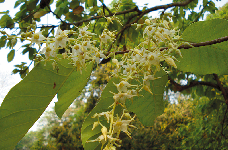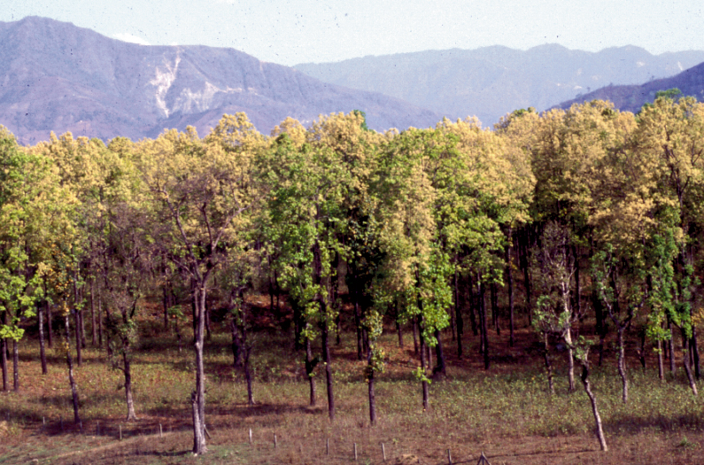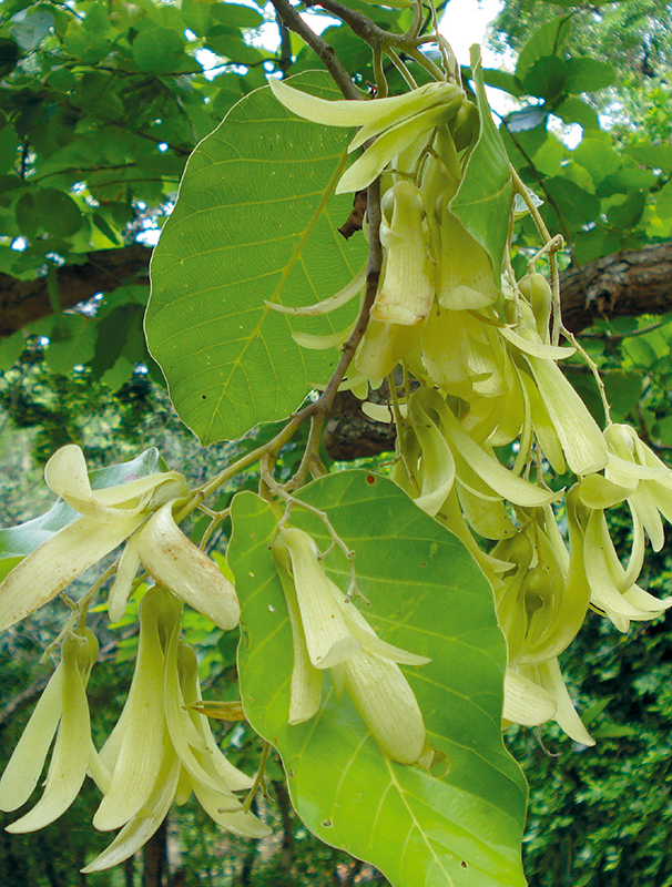 | | | สาละ: ป่าสาละบริเวณอุทยานแห่งชาติเชตุวันฯ คล้ายกับป่าเต็งรังของไทย แผ่นใบเกลี้ยง กลีบดอกบิดเวียน โคนกลีบเรียงซ้อนกันเป็นรูปถ้วย ผลมีปีกยาว 3 ปีก ปีกสั้น 2 ปีก (ภาพ: ราชันย์ ภู่มา, ณรงค์ นันทะแสน)