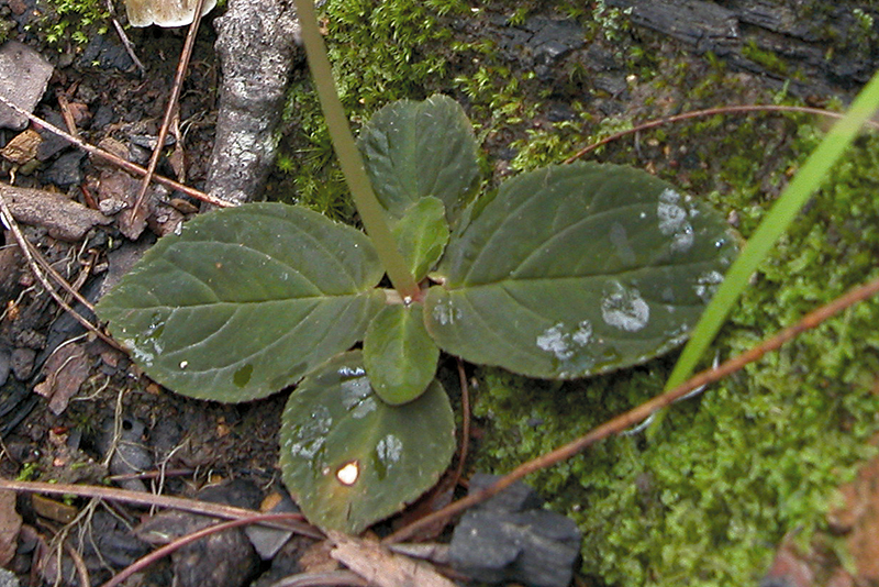 ไม้ล้มลุก ลำต้นอวบน้ำสั้น ๆ หรืออยู่ใต้ดิน สูงได้ถึง 10 ซม. บางครั้งมีปีกบาง ๆ มีขนประปรายตามลำต้น แผ่นใบด้านบน ก้านใบ และฐานดอก ใบเรียงตรงข้ามที่โคนต้นคล้ายออกเป็นกระจุก ใบรูปไข่หรือรูปรี ยาว 2.5–8 ซม. ปลายแหลมหรือมน โคนกลม ขอบจักซี่ฟัน มีขนครุย แผ่นใบด้านล่างเกลี้ยง มักมีสีม่วงอมแดง เส้นแขนงใบข้างละ 2–4 เส้น คู่ล่างออกใกล้โคน ก้านใบยาว 0.8–2.5 ซม. ช่อดอกคล้ายช่อซี่ร่ม มี 3–6 ดอก ก้านช่อยาว 4–7 ซม. ก้านดอกยาวประมาณ 3 มม. ฐานดอกรูปขอบขนาน ยาว 4–7 มม. ดอกสีชมพู กลีบรูปรี ยาว 0.7–1.7 ซม. เกสรเพศผู้ 3 อัน อับเรณูยาว 6–9 มม. ผลรูปกรวย ยาว 4–6 มม. เรียบหรือมีสันตื้น ๆ พบที่พม่า และคาบสมุทรมลายู ในไทยพบทางภาคเหนือ ภาคตะวันออกเฉียงเหนือ ภาคตะวันออกเฉียงใต้ และภาคใต้ ขึ้นตามก้อนหินที่เปียกชื้นหรือบนพื้นดิน โดยเฉพาะริมลำธาร ความสูง 300–1700 เมตร