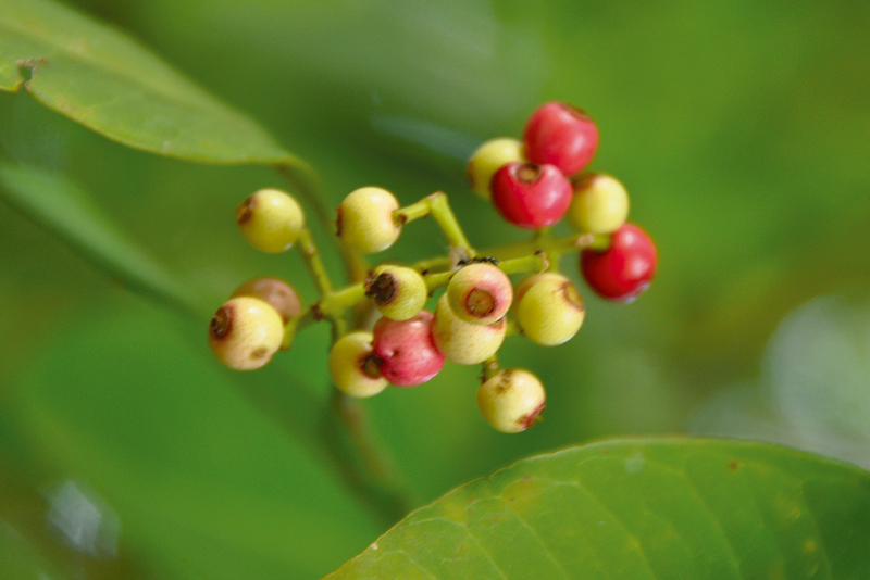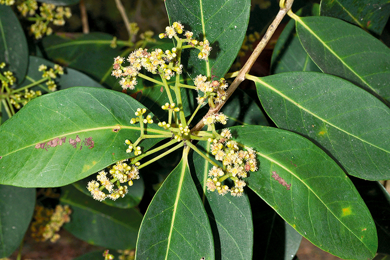 ไม้ต้น สูงได้ถึง 20 ม. ใบรูปไข่หรือรูปไข่กลับ ยาว 7–15 ซม. ปลายมน กลม หรือแหลม โคนรูปลิ่ม แผ่นใบหนา เส้นแขนงใบ 6–12 เส้น เรียงจรดกันเป็นเส้นขอบในไม่ชัดเจน ก้านใบยาว 4–8 มม. ช่อดอกแบบช่อกระจุกแยกแขนงออกที่ปลายกิ่งยาวได้ถึง 8 ซม. ดอกไร้ก้าน ไม่มีก้านดอกเทียม ฐานดอกรูปกรวย ยาว 2–3.5 มม. กลีบเลี้ยงขนาดเล็กมาก กลีบดอก 4 กลีบ รูปไข่กว้าง ยาวประมาณ 2 มม. มีต่อมหนาแน่น เกสรเพศผู้ยาว 1.5–2.5 มม. ก้านเกสรเพศเมียยาวประมาณ 1 มม. ผลกลม เส้นผ่านศูนย์กลาง 0.6–1 ซม. ผลแก่สีแดง