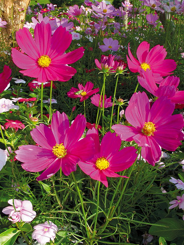 ดาวกระจาย: C. bipinnatus ใบประกอบ 2 ชั้น ดอกวงนอกสีขาว ชมพู หรือม่วง (ภาพ: ปาจรีย์ อินทะชุบ)