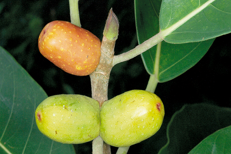 ลุงขน: ฐานดอกที่ขยายใหญ่และอวบน้ำ ออกเป็นคู่หรือเดี่ยว ๆ ตามซอกใบ รูปขอบขนาน ไร้ก้าน สุกสีเหลืองหรือแดงอมส้ม (ภาพ: ราชันย์ ภู่มา)