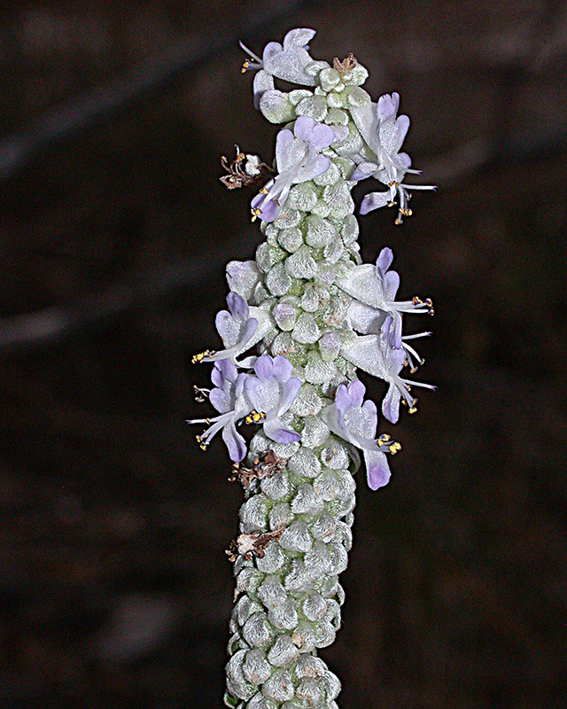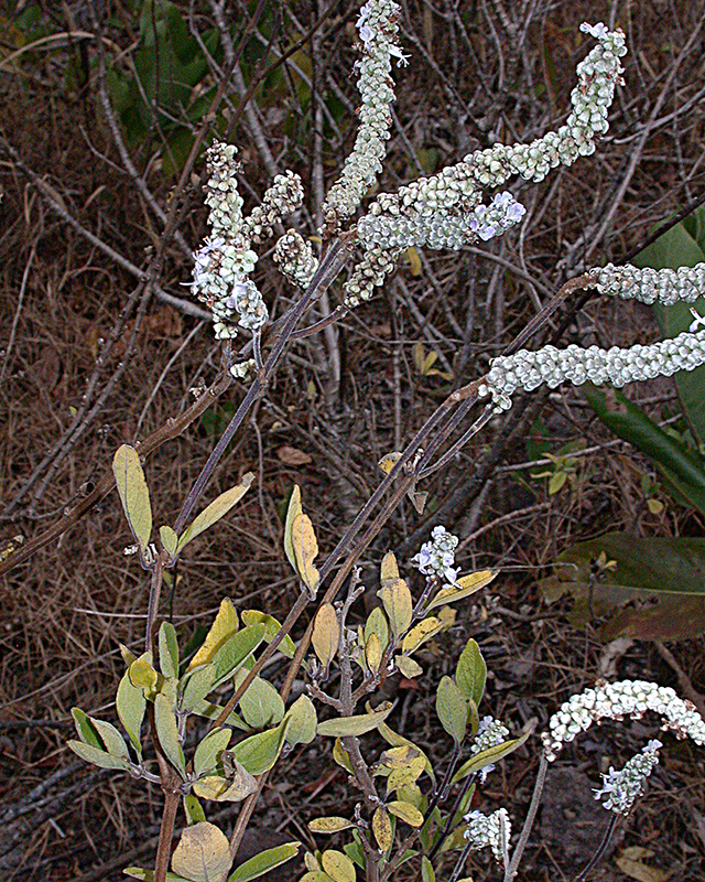 ไม้พุ่มขนาดเล็ก สูง 1–1.5 ม. ลำต้นเป็นไม้เนื้อแข็ง เป็นสี่เหลี่ยม มีขนปกคลุมน้อยถึงมาก มักพบต่อมสีเหลืองหรือแดง ใบเรียงตรงข้ามหรือเรียงคล้ายเป็นกระจุกรอบข้อ รูปหอก ขนาด 0.5–2.5 x 1.5–9 ซม. ปลายใบแหลม ขอบใบหยักมนหรือจักฟันเลื่อยหรือม้วนงอลง มีขนที่ขอบ ฐานใบสอบเรียว ปกติมีต่อมทั้งสองด้านของแผ่นใบ เส้นแขนงใบ 3–6 คู่ ก้านใบยาวถึง 1 ซม. ช่อดอกแบบช่อเชิงลด ยาวถึง 15 ซม. แตกกิ่งจำนวนมาก ดอกย่อยอัดแน่น กลีบเลี้ยงรูปไข่ขนาดเล็กมาก กลีบแยก 2 ส่วนๆบนมี 1 แฉกรูปขอบขนานและโค้งกลับ กลีบล่าง 4 แฉกขนาดเกือบเท่ากัน ยาว 3–5 มม. และที่โคนกลีบเป็นถุง กลีบดอกสีขาวหรือม่วง ยาว 8–10 มม. ปลายกลีบแยกเป็น 2 ส่วน แฉกบนมี 4 แฉก รูปกลม ขนาดเกือบเท่ากัน แฉกล่าง 1 แฉก รูปขอบขนาน ค่อนข้างโค้งเว้า (Concave) ยาวกว่าแฉกบน หลอดกลีบดอกโค้งงอลงและขยายกว้าง ผลแบบเมล็ดแข็ง รูปไข่ ยาวประมาณ 1 มม. สีน้ำตาลเข้ม มีกลีบเลี้ยงติด |