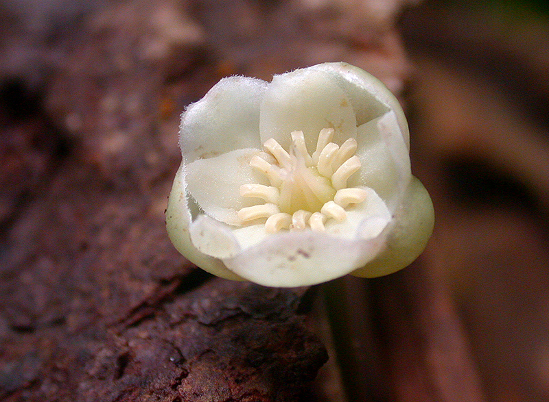 ไม้ต้น สูงได้ถึง 10 ม. ใบเรียงเวียนเกือบเป็นวงรอบ 3–6 ใบ รูปรี รูปไข่กลับ หรือแกมรูปใบหอก กว้าง 2–5.5 ซม. ยาว 7–14 ซม. ปลายเรียวแหลม ขอบเรียบ โคนสอบ ก้านใบยาว 0.5–1.5 ซม. ดอกสีขาวหรืออมชมพู ออกเดี่ยว ๆ ตามง่ามใบหรือลำต้น สมบูรณ์เพศ ก้านดอกเรียว ยาวได้ถึง 5 ซม. วงกลีบรวมมี 11–18 กลีบ เรียง 2–3 ชั้น กลีบด้านนอกรูปไข่หรือกลม กลีบด้านในรูปขอบขนานหรือรูปใบหอก เรียงซ้อนเหลื่อม เกสรเพศผู้ 11–16 อัน มี 5–8 คาร์เพล์ เรียงเป็นวง แต่ละคาร์เพลมีออวุลเม็ดเดียว ผลแห้ง แตกด้านบน เส้นผ่านศูนย์กลางประมาณ 2 ซม. | | | |