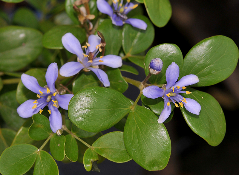 ไม้พุ่มหรือไม้ต้น สูง 3–15 ม. ข้อพองเป็นปุ่ม ใบประกอบปลายคู่ ก้านใบประกอบยาว 0.5–1 ซม. ใบย่อยมี 2–3 คู่ เรียงตรงข้าม ใบรูปไข่กลับหรือรูปรี ปลายมน โคนรูปลิ่ม ขอบเรียบ ไร้ก้าน ดอกออกเดี่ยว ๆ เป็นกระจุกตามปลายกิ่ง 3–4 ดอก สีฟ้าอมม่วง กลีบเลี้ยงและกลีบดอกมีจำนวนอย่างละ 5 กลีบ กลีบเลี้ยงรูปไข่ โคนเชื่อมติดกัน ขนาดเล็ก หลุดร่วงง่าย กลีบดอกรูปรีหรือรูปไข่ ยาวได้ประมาณ 2 ซม. เกสรเพศผู้ 10 อัน แยกกัน อับเรณูติดด้านหลัง แตกตามยาว รังไข่เหนือวงกลีบ เกสรเพศเมีย 1 อัน ผลแห้งแตก แบน รูปหัวใจ ยาว 1.5–2 ซม. ปลายมีติ่งแหลม มีครีบ 2 ข้าง หนา สีเหลืองอมส้ม มี 1–2 เมล็ด |