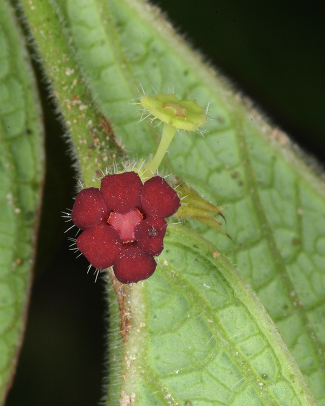 ไม้พุ่มเตี้ย แยกเพศร่วมต้น สูง 0.4–2 ม. แตกกิ่งจำนวนมาก มีขนหยาบหนาแน่น หูใบยาว 2–4 มม. ใบเรียงเวียน รูปรี รูปไข่ หรือรูปไข่กลับ ยาว 1.5–7.5 ซม. ปลายแหลมสั้นเกือบมนหรือมีติ่งแหลมสั้น ๆ โคนรูปลิ่ม มน หรือกลม แผ่นใบมีขนกระจายด้านล่าง เส้นแขนงใบข้างละ 5–8 เส้น ดอกออกเป็นกระจุกสั้น ๆ ตามซอกใบ ไม่มีกลีบดอก กลีบเลี้ยง 6 กลีบ รูปรีกว้างเกือบกลม แยกเกือบจรดโคน มีขนด้านนอก ดอกเพศผู้ขนาดเล็ก เส้นผ่านศูนย์กลางประมาณ 3 มม. ก้านดอกยาว 3–4 มม. เกสรเพศผู้ 3 อัน เชื่อมติดกันเป็นเส้าเกสร สูงประมาณ 0.3 มม. ดอกเพศเมียเส้นผ่านศูนย์กลาง 5–10 มม. ขยายในผล ก้านดอกยาวประมาณ 3 มม. กลีบเลี้ยงกลีบเล็ก 3 กลีบ ยาวประมาณ 2.5 มม. กลีบใหญ่ 3 กลีบ ยาว 3–4.5 มม. รังไข่มี 3 ช่อง สูงประมาณ 1 มม. เกสรเพศเมียไร้ก้าน ยอดเกสรมี 3 แฉก แต่ละแฉกแยก 2 พู บานออกตามแนวระนาบ ผลแห้งแตก รูปรีกว้าง ยาว 6–8 มม. เมล็ดรูปสามเหลี่ยม ยาวประมาณ 5 มม. |