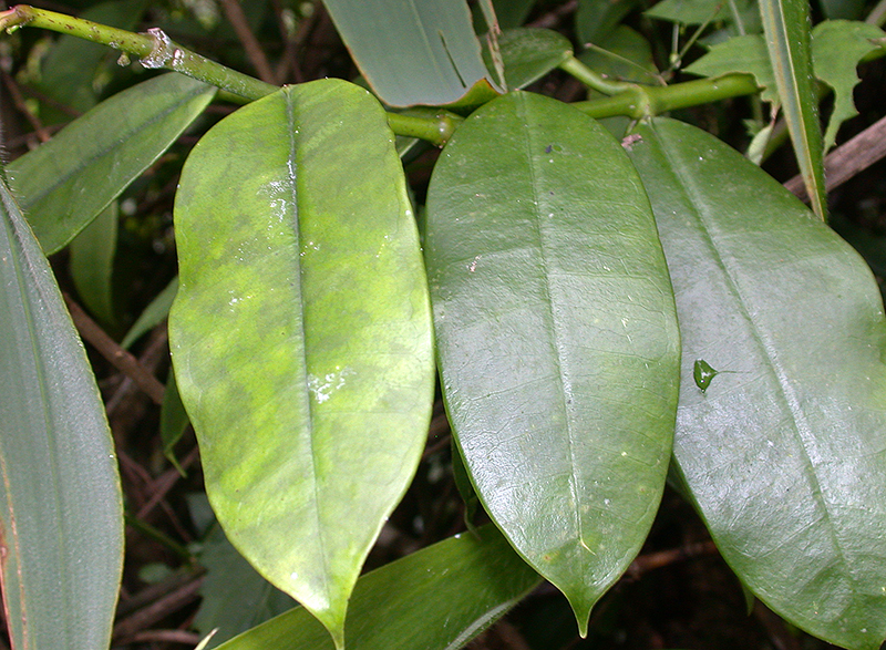 ไม้เถาเกาะเลื้อย ยาว 2–3 ม. น้ำยางสีขาว ใบเรียงตรงข้าม รูปขอบขนานหรือรูปใบหอก ยาว 10–18 ซม. ปลายยาวคล้ายหางสั้น ๆ โคนรูปลิ่ม มน หรือกลม แผ่นใบหนา เส้นแขนงใบข้างละ 10–15 เส้น ก้านใบยาว 1.5–2.5 ซม. ช่อดอกคล้ายช่อซี่ร่ม ออกตามปลายกิ่งหรือตามซอกใบ ดอกมี 20–30 ดอกในแต่ละช่อ ก้านช่อยาว 1.5–3 ซม. ก้านดอกยาว 2–2.5 ซม. กลีบเลี้ยง 5 กลีบ รูปรี ยาว 1.5–2 มม. กลีบดอก 5 กลีบ รูปไข่ เชื่อมติดกันประมาณกึ่งหนึ่ง เส้นผ่านศูนย์กลางประมาณ 1 ซม. กลีบพับงอกลับ ด้านในมีขนละเอียด กระบัง 5 พู หนา แนบติดเส้าเกสรด้านบน มุมด้านในมีหางโค้ง ยาวเท่า ๆ ยอดอับเรณู เกสรเพศผู้ 5 อัน เชื่อมติดกัน ปลายอับเรณูบาง แนบติดยอดเกสรเพศเมีย กลุ่มอับเรณูยาวประมาณ 0.8 มม. ผลเป็นฝักแตกแนวเดียว รูปแถบ ยาว 13–20 ซม. เมล็ดรูปขอบขนาน ยาวประมาณ 5 มม. ปลายมีประจุกขน ยาวประมาณ 3 ซม. | | | |