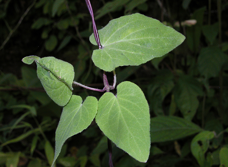 ไม้เถาล้มลุก รากสะสมอาหารหนาเรียวยาว ลำต้นสีม่วงอมเขียว เกลี้ยง ใบเรียงตรงข้ามหรือเกือบตรงข้าม รูปไข่หรือรูปหัวใจ ยาว 2.5–8 ซม. ปลายแหลมหรือมน โคนเว้ารูปหัวใจ ขอบใบเรียบหรือจักฟันเลื่อยห่าง ๆ แผ่นใบเกลี้ยงหรือมีขนประปรายด้านล่าง ก้านใบยาว 1.5–6 ซม. ดอกออกเดี่ยว ๆ ตามซอกใบ ก้านดอกยาว 1–5 ซม. กลีบเลี้ยงอยู่ใต้รังไข่ ไม่เชื่อมติดรังไข่ ติดทน มี 5 กลีบ แฉกลึกเกือบจรดโคน กลีบรูปไข่แกมรูปขอบขนาน ยาว 1–2 ซม. ขอบเรียบ กลีบดอกติดบนรังไข่ รูประฆังคว่ำ ยาว 1.5–3.5 ซม. สีขาวครีมอมเขียว มีลายสีม่วงอ่อน ๆ กระจายทั่วไปด้านใน มี 5 กลีบ แฉกลึกประมาณกึ่งหนึ่ง เกสรเพศผู้ 5 อัน รังไข่ใต้วงกลีบดอก มี 5 ช่อง ก้านเกสรเพศเมียยาวประมาณ 1 ซม. ยอดเกสรจัก 3 พู ผลสดมีหลายเมล็ด กลม เส้นผ่านศูนย์กลาง 1.5–2.5 ซม. ผลแก่สีม่วง เมล็ดกลมขนาดเล็ก จำนวนมาก |