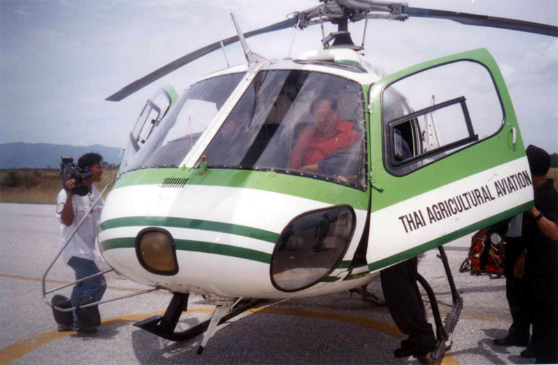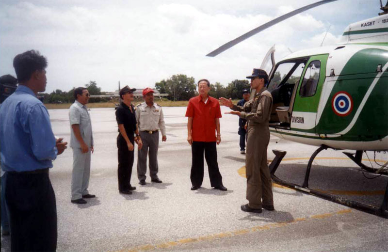 นายธีระ โรจนพรพันธ์ ผู้ว่าราชการจังหวัดนราธิวาส ได้นั่งเฮลิคอปเตอร์ เพื่อสำรวจพื้นที่ไฟไหม้ในเขตนิคมสหกรณ์บาเจาะ จังหวัดนราธิวาส