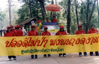 และจัดเจ้าหน้าที่เดินถือป้ายประชาสัมพันธ์ให้ประชาชนที่เข้าร่วมงานรณรงค์ในการป้องกันไฟป่าด้วย
