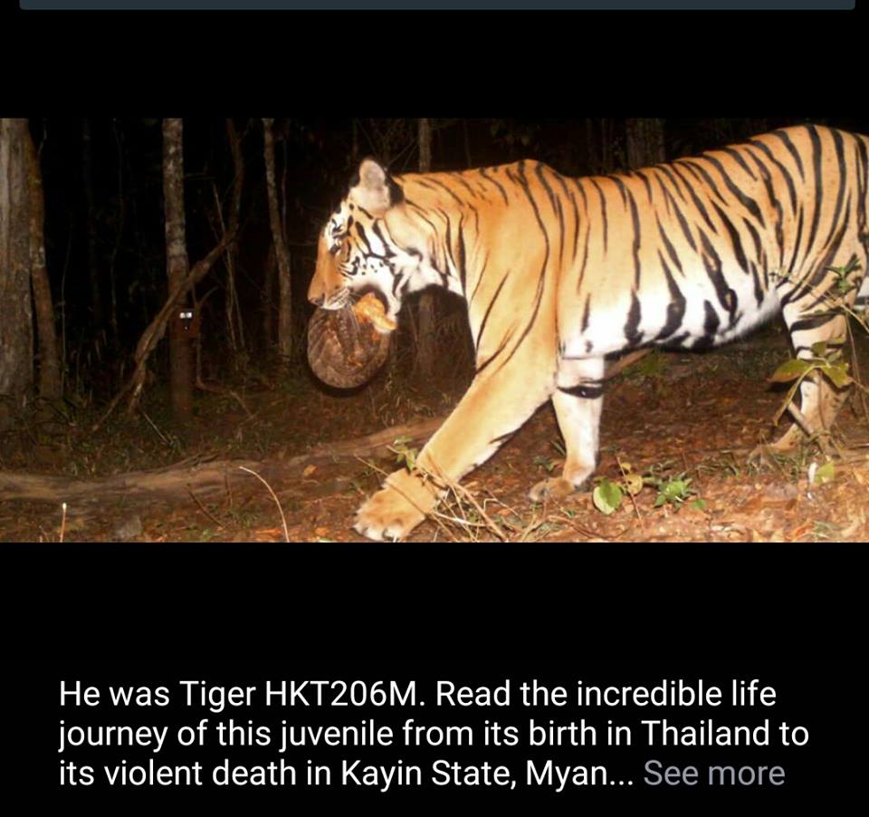 ความตายของเสือโคร่งและจุดสีดำในงานอนุรักษ์ ภาพเสือโคร่งหนุ่มที่ถูกยิงตายในรัฐ Kayin (รัฐกะเหรี่ยง) ที่พม่าเมื่อวันที่ 25 กุมภาพันธ์เพราะออกมากัดคนเป็นข่าวโด่งดังไปทั่วโลกผ่านสังคมออนไลน์