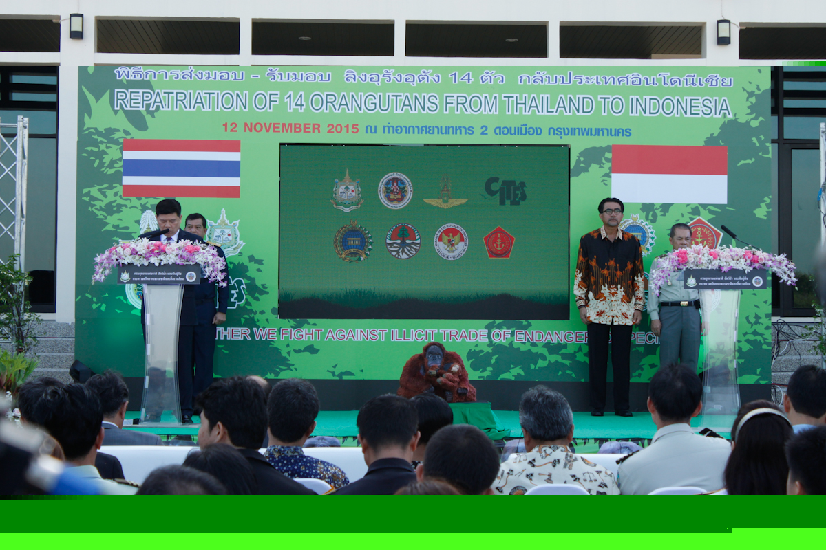 พิธีการส่งมอบ-รับมอบลิงอุรังอุตัง 14 ตัว กลับประเทศอินโดนี