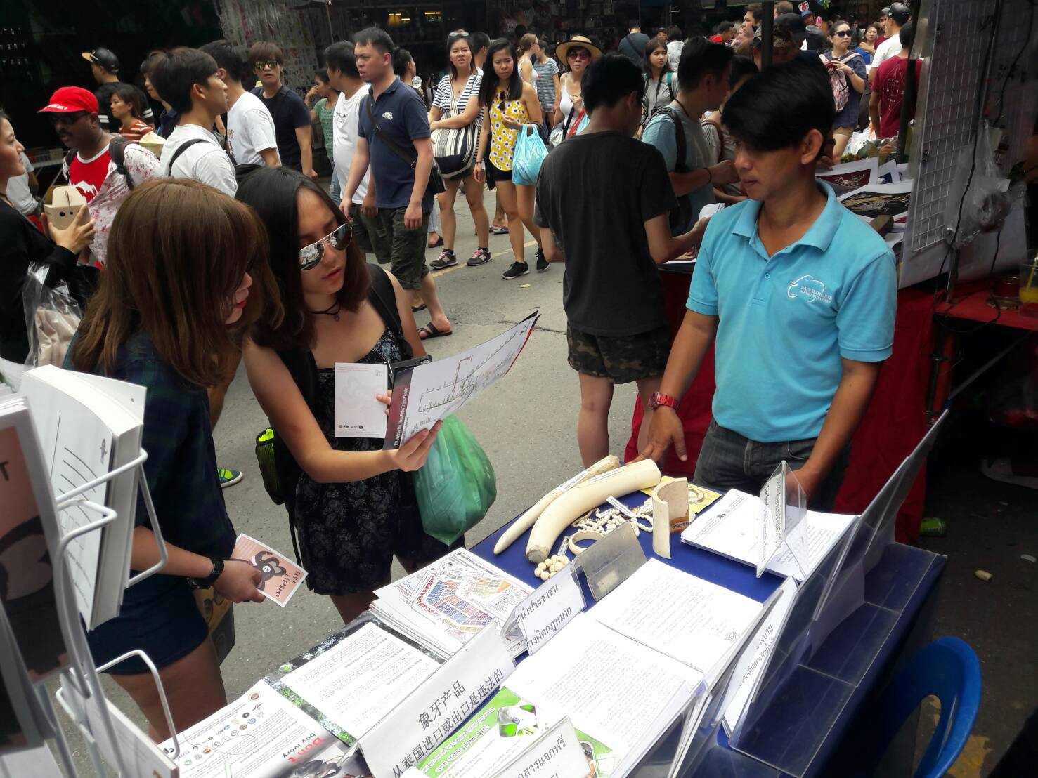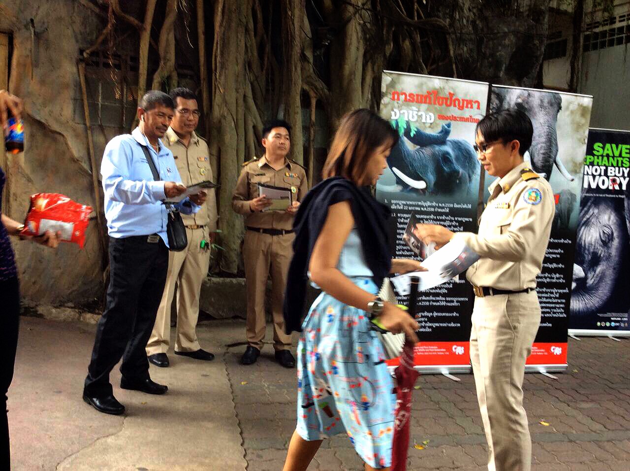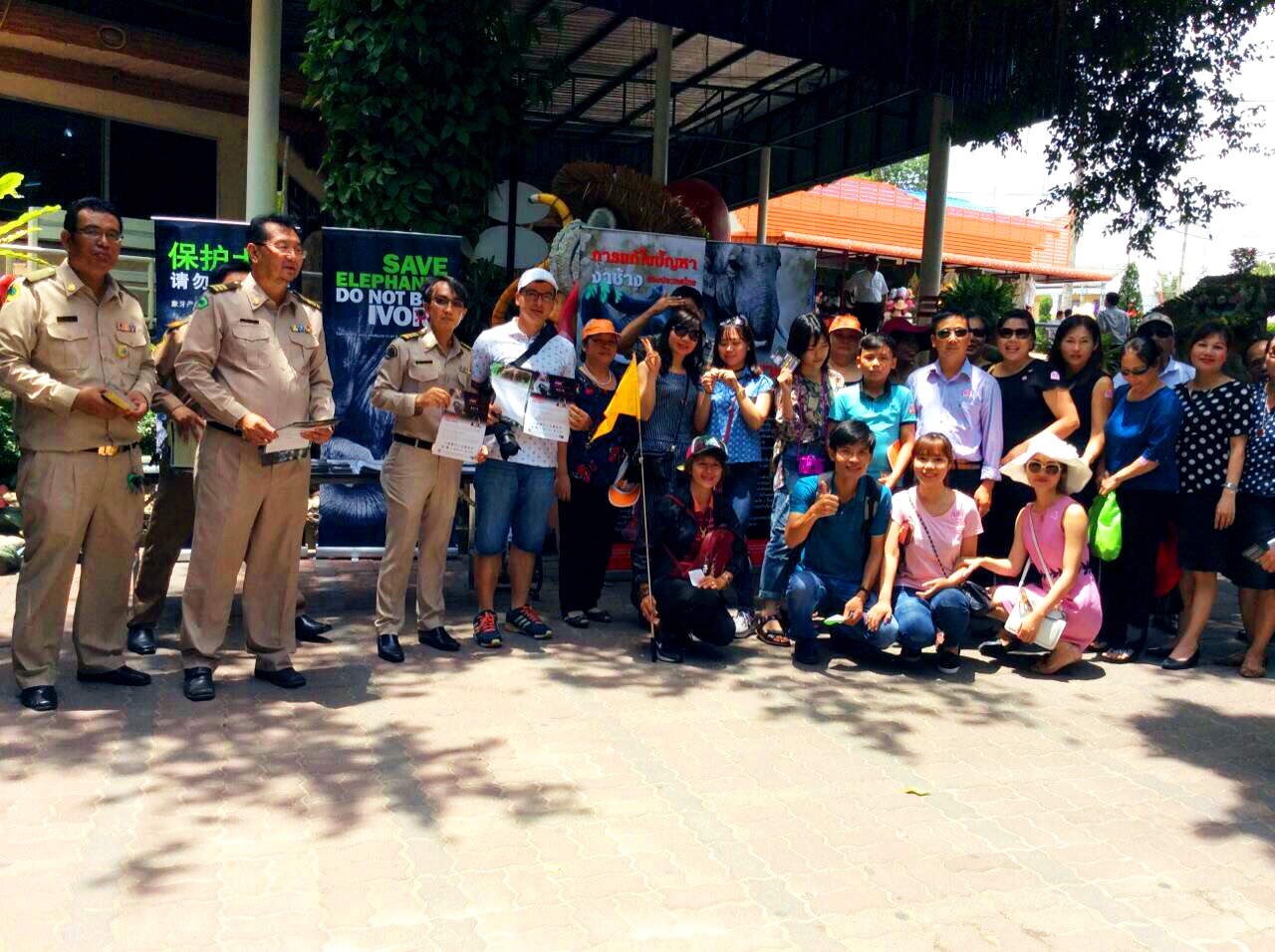เจ้าหน้าที่กรมอุทยานแห่ชาติ สัตว์ป่าและพันธุ์พืช ร่วมกับเจ้าหน้าที่ตำรวจ บก.ปทส. รณรงค์ประชาสัมพันธ์ ไม่ให้นักท่องเที่ยวชาวต่างชาติซื้องาช้างจากประเทศไทย และร่วมตรวจร้านค้างาช้าง ที่ตลาดนัดจตุจักร กทม. ทุกอาทิตย์ |