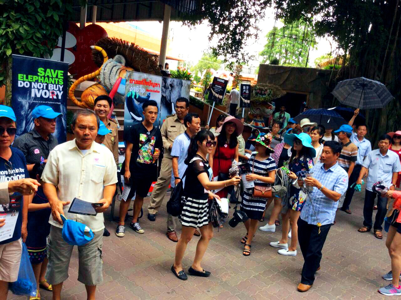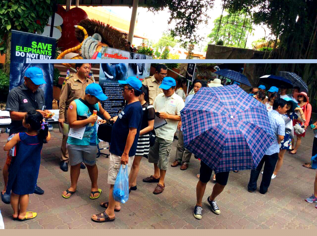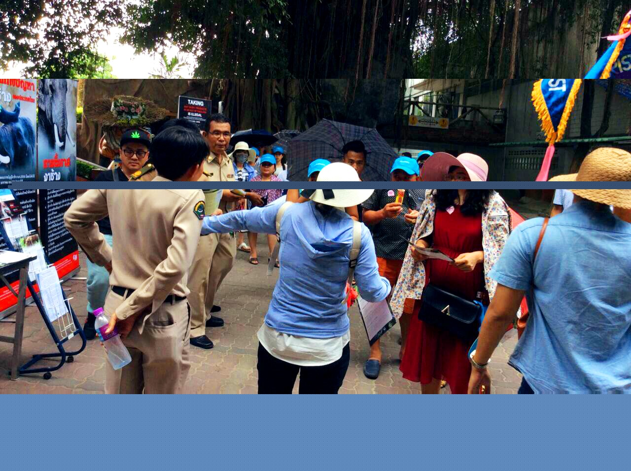 วันเสาร์ที่ 9 กรกฎาคม 2559 ด่านตรวจสัตว์ป่าลาดกระบัง จัดนิทรรศการและรณรงค์ไม่ให้นักท่องเที่ยว ซื้องาช้างจากประเทศไทย ที่ตลาดนัดจตุจักร กทม. |