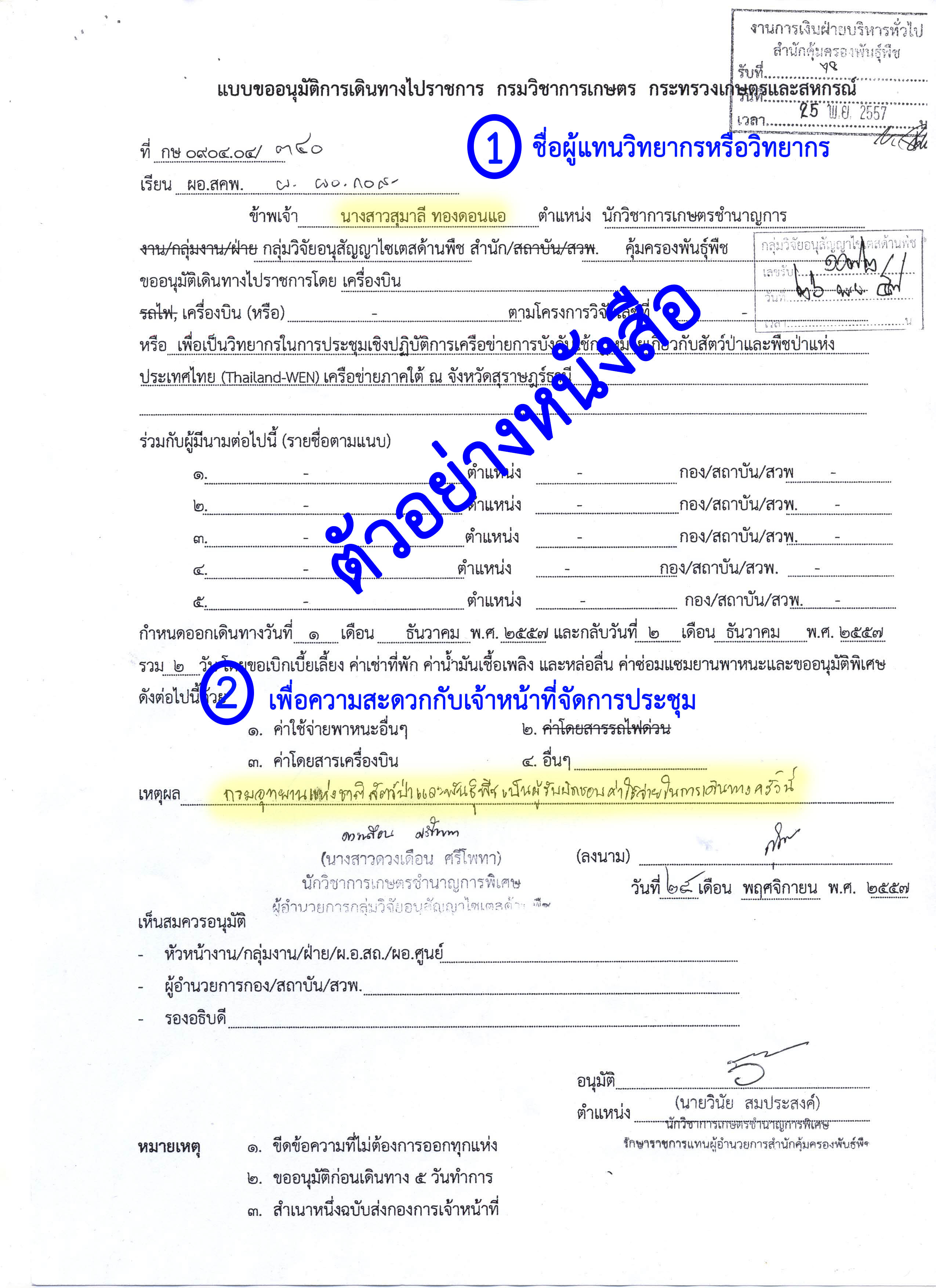 3.ดังนั้นคุณสุมาลีจึงทำหนังสืออนุมัติเดินทางไปราชการ ดังตัวอย่างต่อไปนี้
