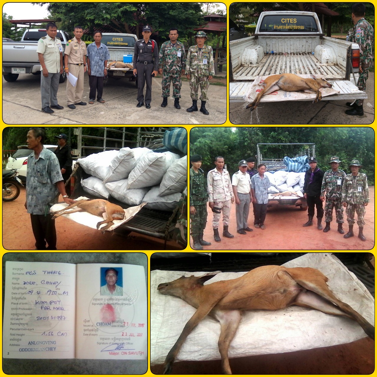 3. ตรวจป้องกันและปราบปรามฯ ตามอำนาจหน้าที่ ร่วมกับหน่วยงานที่เกี่ยวข้อง ณ จุดตรวจร่วม จุดผ่านแดนถาวรช่องสะงำ อ.ภูสิงห์ จ.ศรีสะเกษ ตรวจพบการกระทำผิด จำนวน 1 ราย ผู้ต้องหา จำนวน 1 คน (นายเทง ชาย ชาวกัมพูชา) ตรวจยึดซากอีเก้งหรือเก้งหรือฟาน (สัตว์ป่าคุ้มครอง) รถยนต์กระบะบรรทุก 4 ล้อ ยี่ห้อโตโยต้า ไมตี้เอ็ก สีเทา ทะเบียน 2A0006 อุดรมีชัย จำนวน 1 คัน นำส่งพนักงานสอบสวน สภ ภูสิงห์ ปจว ข้อ 2 เวลา 15.30 น คดีอาญาที่ 223/59 ของกลางที่ 205/59 ลว 23 มิย59 ในข้อหา นำเข้าซึ่งซากสัตว์ป่าคุ้มครอง และมีซากสัตว์ป่าคุ้มครองไว้ในครอบครอง โดยไม่ได้รับอนุญาต ตาม พรบ สงวนฯ2535 มาตรา 23 วรรคสอง และมาตรา 19 เหตุเกิดที่ ในเขตด่านตรวจสัตว์ป่าช่องจอม พิกัด UTM 48P 398928E 1585859 N ตำบลไพรพัฒน อ.ภูสิงห์ จ.ศรีสะเกษ สำหรับของกลางจะได้ขออนุมัติพนักงานสอบสวนดำเนินการตามระเบียบฯ ต่อไป