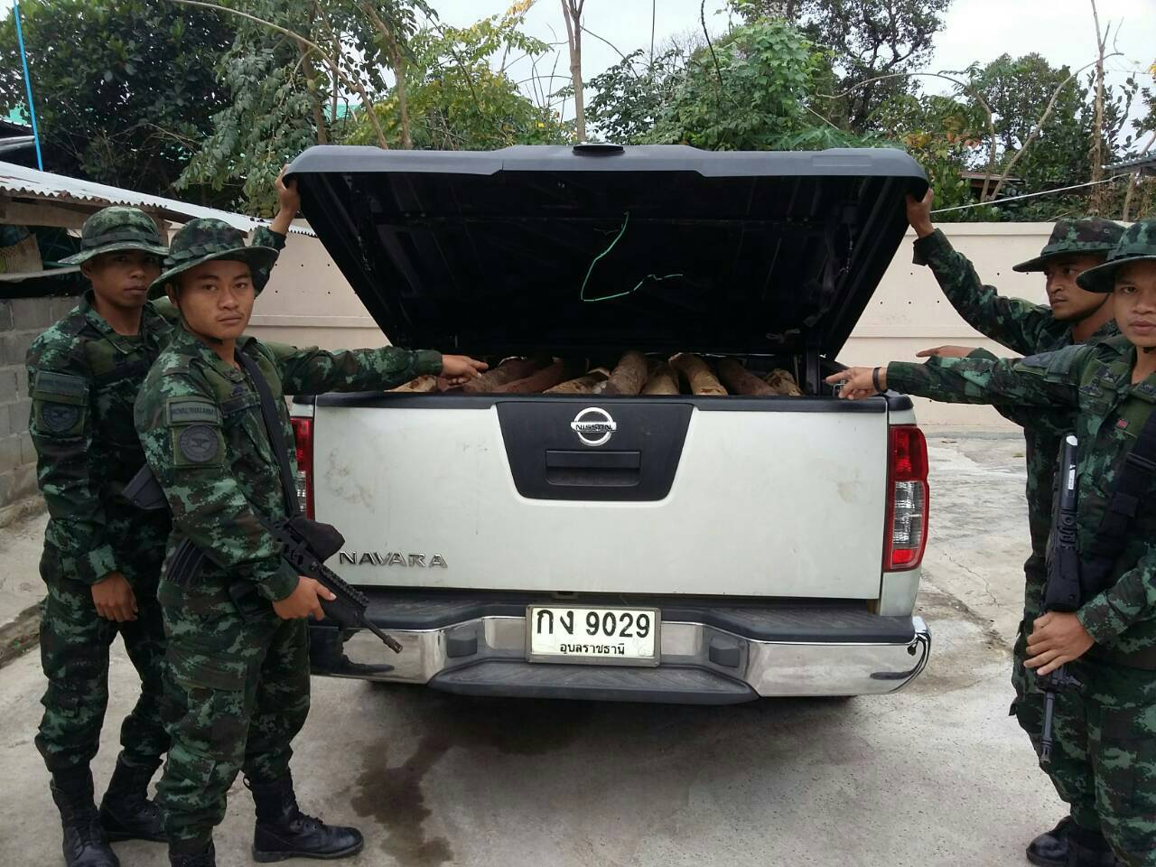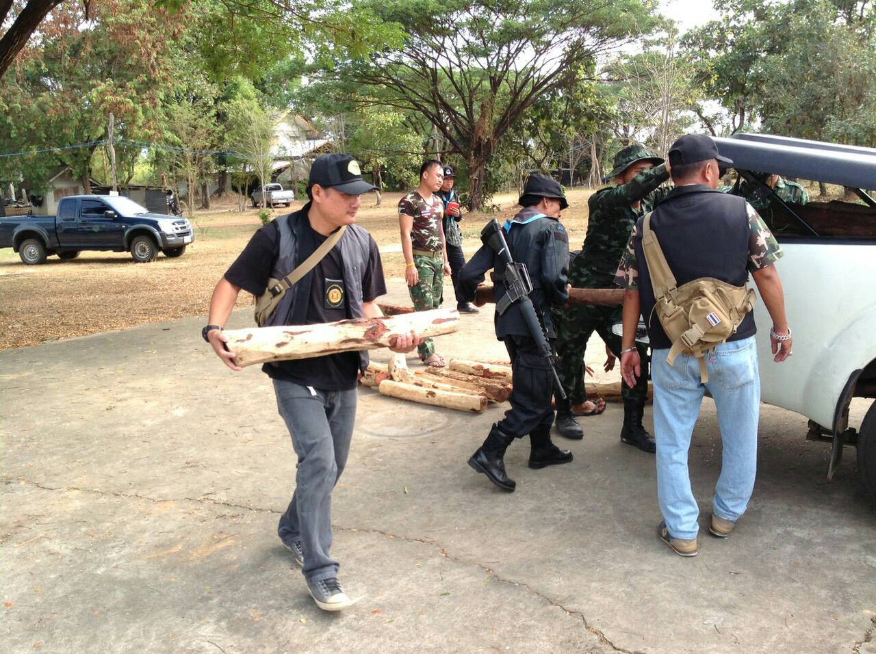 วันที่ 18 มค.58 ด่านตรวจสัตว์ป่ามุกดาหาร จัดเจ้าหน้าที่สายตรวจสนับสนุน กกล.รส.จว.มห.ร่วมกับหน่วยงานที่เกี่ยวข้อง ตรวจยึดไม้พะยูง 87ท่อน 1.06 ลบ.ม รถยนต์กระบะบรรทุก 1คัน เหตุเกิดในบริเวณบ้านเลขที่ 172หมู่ 1บ้านบางทรายใหญ่ ต.บางทรายใหญ่ อ.เมือง จ.มุกดาหาร ใกล้ริมฝั่งแม่น้ำโขง(สกัดได้ก่อนข้ามลาว) มอบให้หน่วยป้องกันรักษาป่าในพื้นที่รับไปดำเนินการต่อไป |