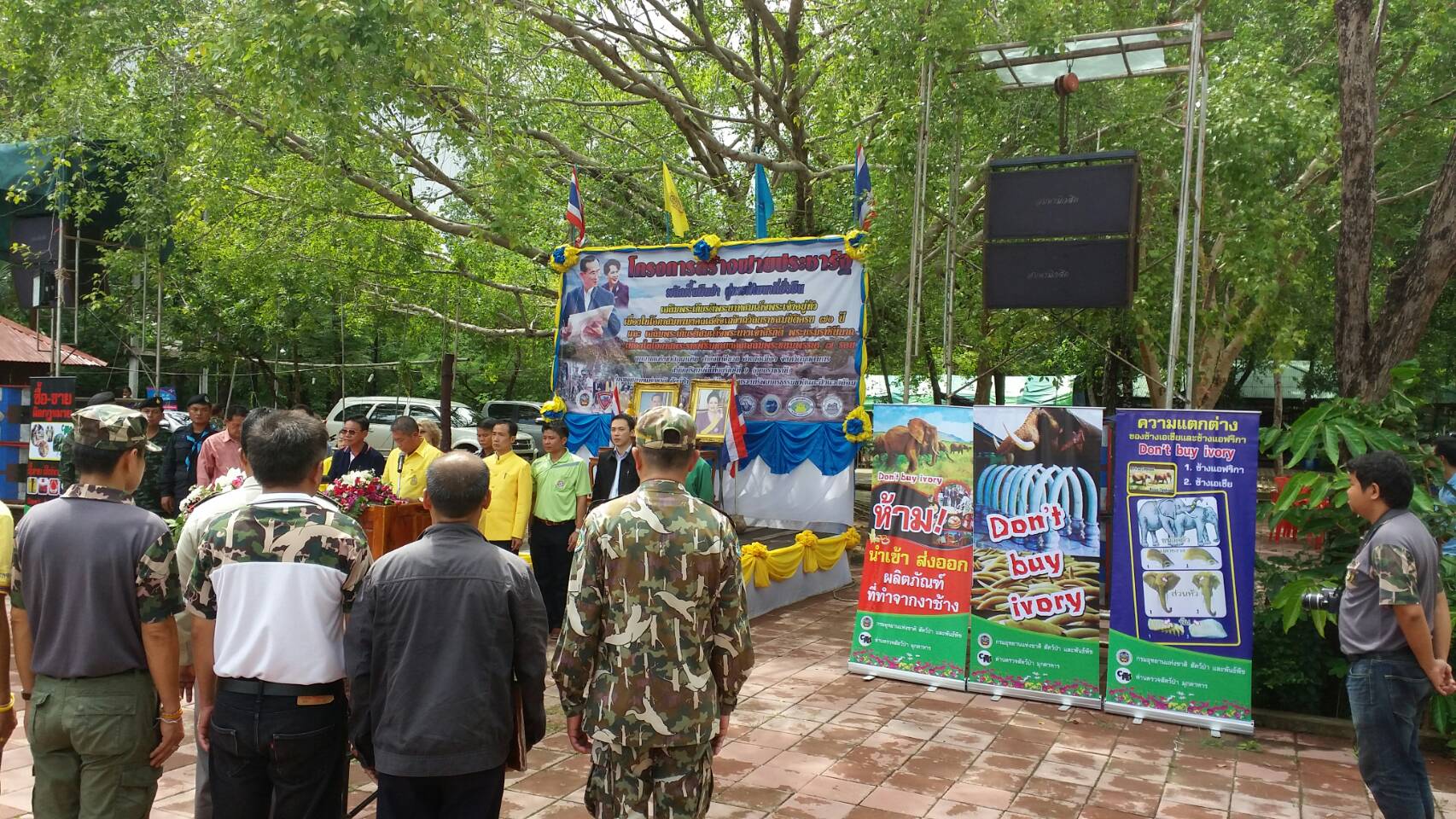 วันที่ 29 มิถุนายน 2559 เวลา 10.00 น. ด่านตรวจสัตว์ป่ามุกดาหาร จัดกิจกรรมรณรงค์ประชาสัมพันธ์ห้ามค้าขาย นำเข้า ส่งออกงาช้างหรือผลิตภัณฑ์ที่ทำจากงาช้าง โดยมี นายทองใบ บุญญาเสนีย์กุล ผู้อำนวยการสำนักบริหารพื้นที่อนุรักษ์ที่ 9 (อุบลราชธานี) เป็นประธานเปิดงานกิจกรรมโครงการสร้างฝายประชารัฐ พลิกฟื้นผืนป่า สู่การพัฒนาที่ยังยืน เพื่อเฉลิมพระเกียรติพระบาทสมเด็จพระเจ้าอยู่หัวฯ เนื่องในโอกาสครองสิริราชสมบัติครบ 70 ปีและเฉลิมพระเกียรติสมเด็จพระนางเจ้าฯ พระบรมราชินีนาถ เนื่องในโอกาสมหามงคลเฉลิมพระชนมพรรษา 84 พรรษา 12 สิงหาคม 2559 ในการนี้นายสถิตย์ พิสัยสวัสดิ์ หัวหน้าด่านตรวจสัตว์ป่ามุกดาหาร ได้นำเจ้าหน้าที่เข้าร่วมกิจกรรมและจัดนิทรรศการเผยแพร่ความรู้ ตลอดจนแจกเอกสารแผ่นพับ โปสเตอร์ รณรงค์ห้ามค้าขายงาช้างและผลิตภัณฑ์ที่ทำจากงาช้าง ในการจัดงานครั้งนี้มีคณะครู นักเรียนจากโรงเรียนผาเทิบ โรงเรียนส้มป่อย องค์การบริหารส่วนจังหวัด เจ้าหน้าที่ฝ่ายปกครอง ทหาร ตำรวจ และภาคประชาชนประกอบด้วย โตโยต้ามุกดาหาร บีกซี โรบินสัน พร้อมชาวบ้านเข้าร่วมกิจกรรมดังกล่าวมีกิจกรรมสร้างฝายชะลอน้ำแบบผสมผสาน ในท้องที่ หน่วยพิทักษ์ห้วยสิงห์ เขตอุทยานแห่งชาติภูผาเทิบ. อำเภอเมือง. จังหวัดมุกดาหาร |