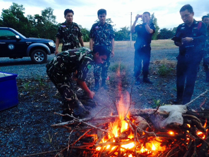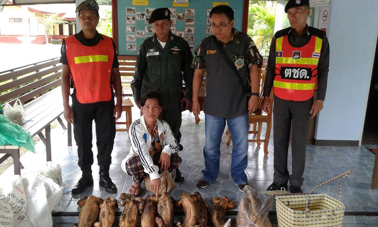 วันที 9 พย. 58 ด่านตรวจสัตว์ป่าคลองใหญ่ จ.ตราด ร่วมกับสายตรวจปรามปรามฯ สายที่2 สำนักฯ 2 ศรีราชา , สายตรวจปราบปรามฯ สายที่ 1 ส่วนอนุรักษ์สัตว์ป่า และ หน่วยปฎิบัติการพิเศษที่ 2 สปป.(ภาคกลาง) ร่วมกันตรวจปราบปรามฯ ( จากการขยายผลคดีก่อน ) บริเวณตลาดแสนตุ้ง ม.1 ต.แสนตุ้ง อ.เขาสมิง จ.ตราด จับกุม นางสาวอรุณ สีเทียนไทย อายุ 53 ปี สัญชาติไทย พร้อมตรวจยึดซากสัตว์ป่าคุ้มครอง 1. ซากกระจง 2.ซากตะกวด 3.ซากลิ่น 4.ซากเม่น น้ำหนักรวม 28.04 กก. อุปกรณ์ในการกระทำผิด ถังแช่น้ำแข็งขนาด 100 กก. 1 ถัง ได้นำตัวผู้ต้องหา ของกลาง ส่งพนักงานสอบสวน สภ.เขาสมิง ดำเนินคดีแล้ว ตามปจว ข้อ 8 เวลา 17.20 น. ลงวันที่ 9 พย. 58 คดีอาญาที่ 287/58 ยึดทรัพย์ที่ 127/58 |